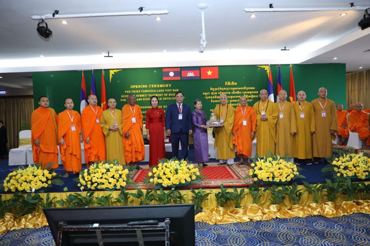ថ្លែងក្នុងពិធីនោះ ឯកឧត្តមបណ្ឌិត ចាយ បូរិន រដ្ឋមន្ត្រីក្រសួងធម្មការ និងសាសនា បានលើកឡើងថា កិច្ចប្រជុំកំពូលព្រះពុទ្ធសាសនាលើកទី ៣ ត្រូវបានរៀបចំឡើងដោយមានថ្នាក់ដឹកនាំនៃប្រទេសកម្ពុជា ឡាវ វៀតណាម ដោយបានធ្វើការវាយតម្លៃខ្ពស់ និងសម្តែងការអបអរសាទរចំពោះការរីកចម្រើនឥតឈប់ឈរនៃចំណងសាមគ្គីភាព មិត្តភាពជាប្រពៃណី ទំនាក់ទំនងជាប្រវត្តិសាស្ត្រ និងកិច្ចសហប្រតិបត្តិការជិតស្និតលើគ្រប់វិស័យ រួមមាន នយោបាយ សន្តិសុខ ការពារជាតិការទូត សេដ្ឋកិច្ច ពាណិជ្ជកម្ម សាសនា វប្បធម៌ អប់រំ និងទេសចរណ៍។