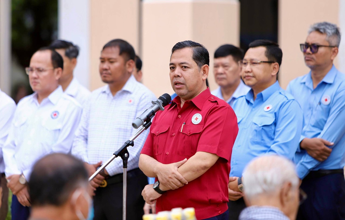 ជាក់ស្តែង ដូចជាពេលនេះ គឺការជួយរបស់កាកបាទក្រហមកម្ពុជា ដោយមិនប្រកាន់ពីនិន្នាការនយោបាយ ជាតិសាសន៍ សាសនា វណ្ណៈ ពណ៌សម្បុរអ្វី ទាំងអស់ ហើយលោកក៏បានផ្ដាំផ្ញើដល់លោកយាយលោកតាបងប្អូនទាំងអស់ឲ្យរក្សានូវអនាម័យល្អ ផឹកស្អាត ហូបស្អាត រស់នៅស្អាត នឹងខិតខំបង្កបង្កើនផល ឬប្រកបមុខរបរផ្សេងៗ ដើម្បីទ្រទ្រង់គ្រួសារឲ្យល្អប្រសើរឡើង។