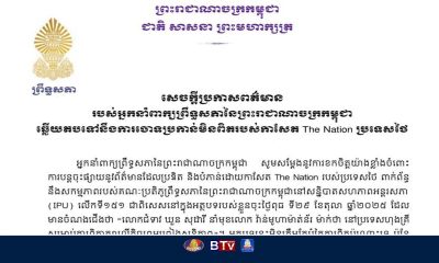 ព័ត៌មាន6 days agoគណៈប្រតិភូជាន់ខ្ពស់ GBC កម្ពុជា ធ្វើមាតុភូមិនិវត្តន៍ ពីម៉ាឡេស៊ី ប្រកបដោយសុវត្ថិភាព