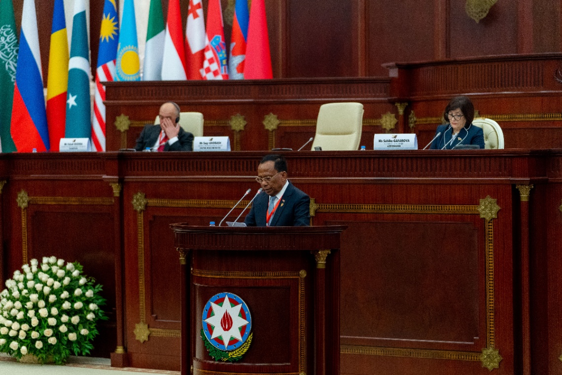 ស្ថិតនៅក្នុងសាលប្រជុំពេញអង្គនៃរដ្ឋសភាសាធារណរដ្ឋអាស៊ែបៃហ្សង់ (Milli Majlis) ឯកឧត្តម វង សូត អនុប្រធានទី២ រដ្ឋសភាកម្ពុជា បានអញ្ជើញថ្លែងសុន្ទរកថាគន្លឹះ ស្តីពី “រដ្ឋធម្មនុញ្ញជាមូលដ្ឋានគ្រឹះនៃឯករាជ្យភាព និងអធិបតេយ្យភាព ក្នុងពិភពលោកសហសម័យ” ដើម្បីរំលឹកខួបលើកទី ៣០ឆ្នាំនៃការអនុម័តរដ្ឋធម្មនុញ្ញរបស់សាធារណរដ្ឋអាស៊ែបៃហ្សង់។