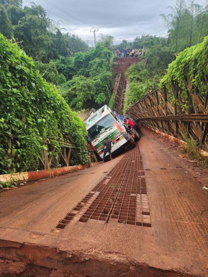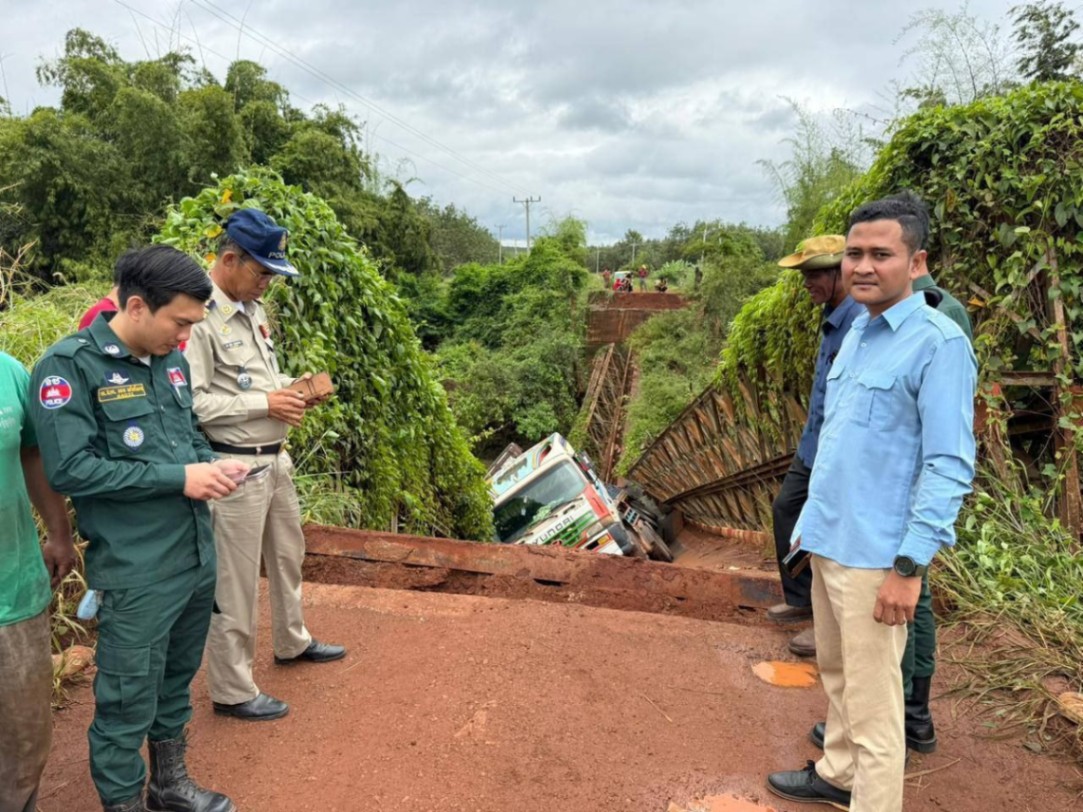 រថយន្តដឹកដំឡូងមីមួយគ្រឿង បើកបរឆ្លងកាត់ស្ពានដែកបេឡេត៍បង្កឲ្យបាក់ស្ពាន នៅស្រុកស្នួល