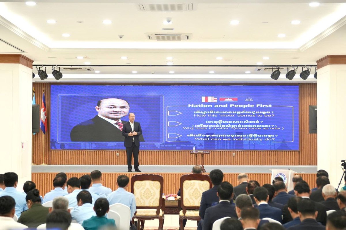 ពេលធ្វើបាឋកាថពិសេសពីប្រធានបទ Nation and People First ឯកឧត្តម ហ៊ុន ម៉ានី បានបញ្ជាក់ថា ប្រធានបទ Nation and People First គឺ ប្រទេសជាតិ និងប្រជាជនជាចម្បង ក្នុងន័យនេះឯកឧត្តមបានពន្យល់ថា បើប្រជាជនបែកបាក់ នោះនឹងធ្វើឱ្យប្រទេសជាតិចុះខ្សោយ ហើយការបែកបាក់ផ្ទៃក្នុង នឹងត្រូវគេឈ្លានពាន ហើយនឹងមាកងាយទៀតផង ដូចនេះត្រូវមានស្មារតីរួបរួម ជាមួយរាជរដ្ឋាភិបាល ជឿជាក់លើកូនខ្មែរ ទើបធ្វើឱ្យខ្មែរខ្លួនឯងរឹងមាំ គ្រួសាររឹងមាំ ប្រទេសជាតិរឹងមាំ ហើយប្រទេសជាតិ ក៏នឹងរីកចម្រើនឈប់ទទួលរងគ្រោះទៀតដែរ។