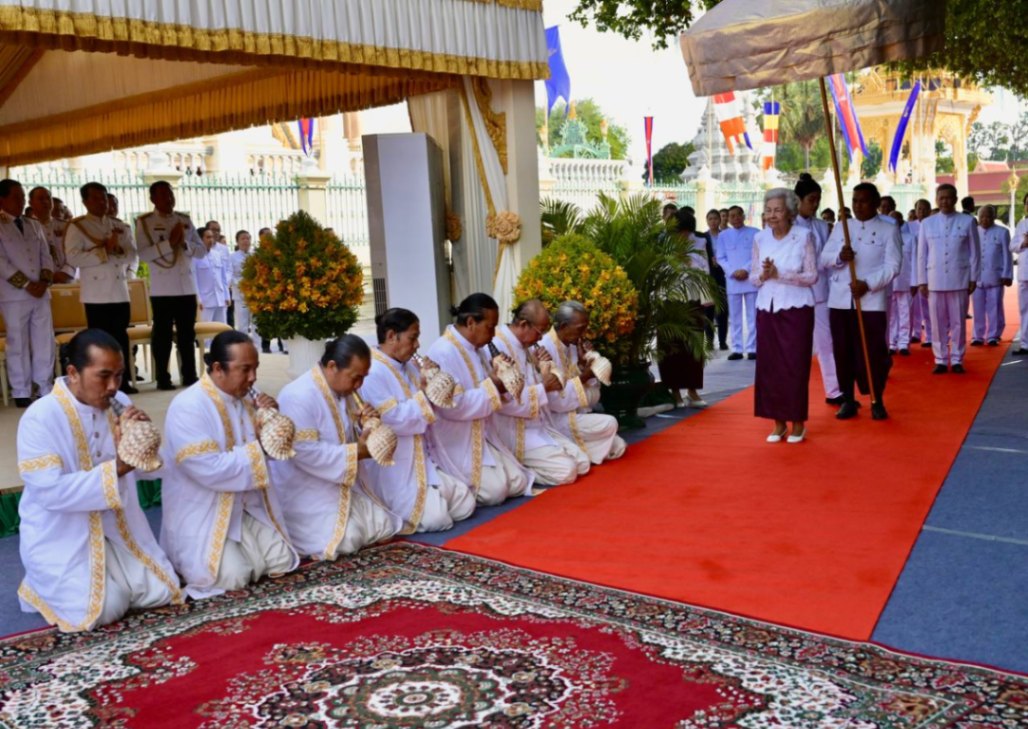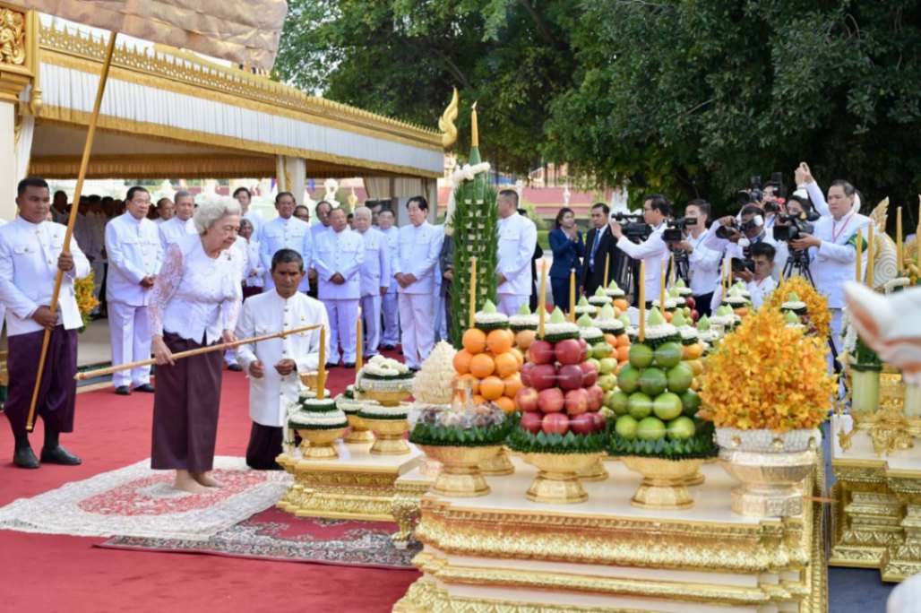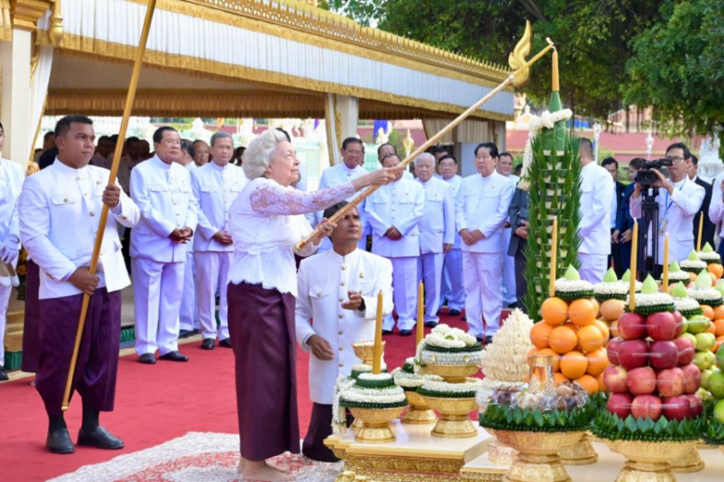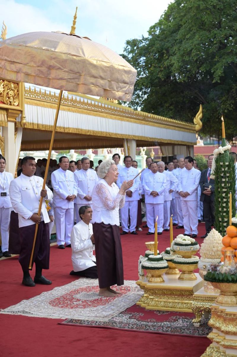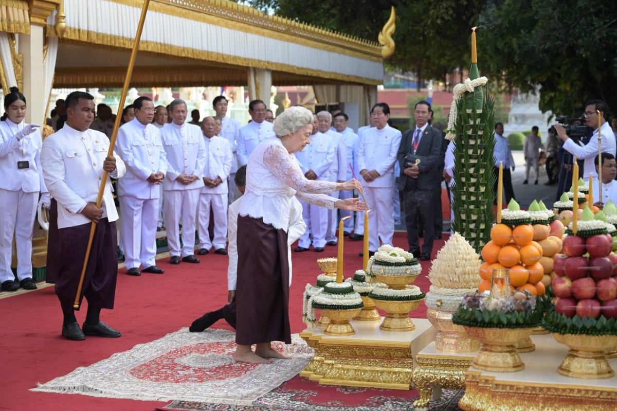 សម្ដេចព្រះមហាក្សត្រី ព្រះរាជតំណាងដ៏ខ្ពង់ខ្ពស់បំផុតរបស់ព្រះមហាក្សត្រ ស្តេចយាងជាព្រះរាជាធិបតី ក្នុងព្រះរាជពិធីបួងសួងចម្រើនសេចក្តីសុខ និងភាពសម្បូរសប្បាយដល់កម្ពុជានៅព្រះបរមរាជវាំង