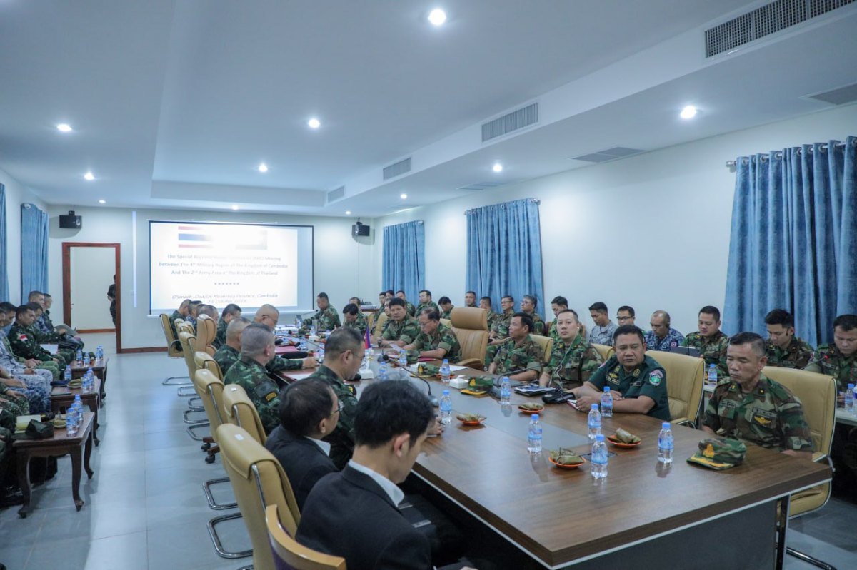 បើតាមលោកជំទាវ អ្នកនាំពាក្យក្រសួងការពារជាតិកម្ពុជា បានបញ្ជក់ថា នៅថ្ងៃទី៣១ ខែតុលា ឆ្នាំ២០២៥ នាវេលាម៉ោង ១៥:០៥នាទីរសៀលនេះ នៅច្រកព្រំដែនអូរស្មាច់ ខេត្តឧត្តរមានជ័យ យោធភូមិភាគទី៤ កម្ពុជា និងកងទ័ពភូមិភាគទី២ ថៃ បានរៀបចំកិច្ចប្រជុំពិសេស នៃគណៈកម្មាធិការព្រំដែនថ្នាក់យោធភូមិភាគ កម្ពុជា-ថៃ (RBC) សម្រាប់ពិភាក្សាលើការកែសម្រួលអាវុធ និងយុទ្ធោបករណ៍បំផ្លិចបំផ្លាញធុនធ្ងន់ បន្ទាប់ពីកិច្ចប្រជុំពិសេសក្រុមលេខាធិការដ្ឋាន នៃគណៈកម្មាធិការព្រំដែនថ្នាក់យោធភូមិភាគ កម្ពុជា-ថៃ (RBC) កាលពីព្រឹកមិញនេះ។