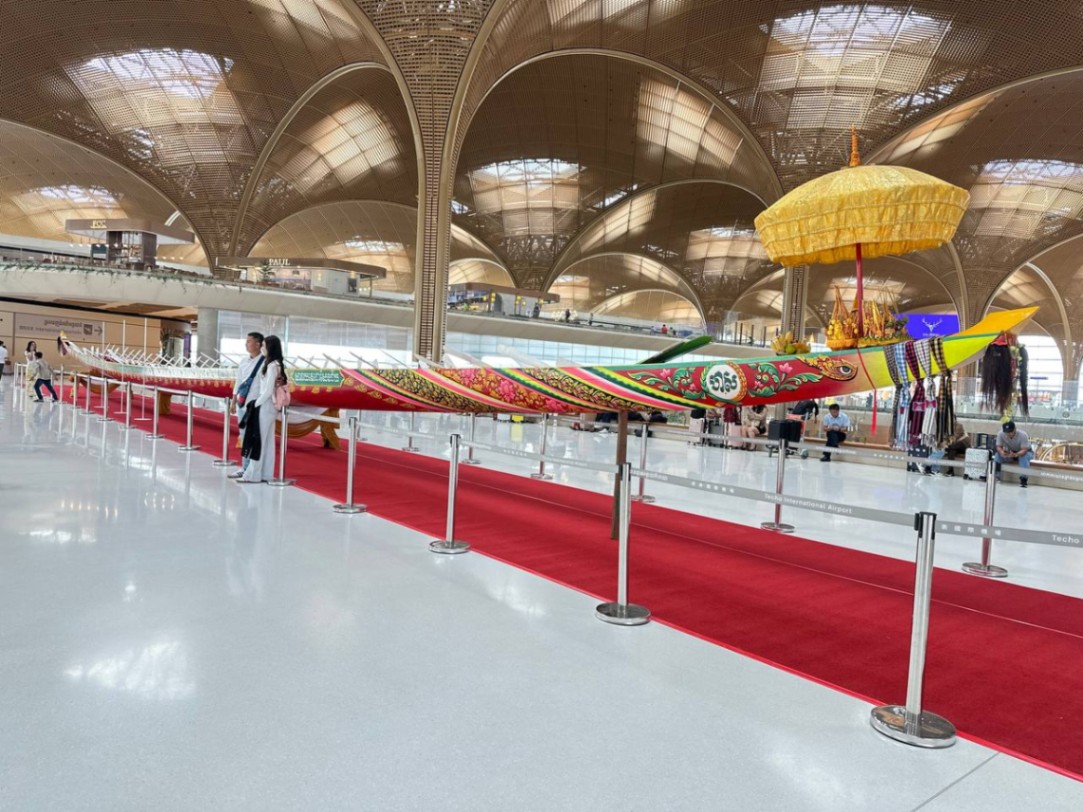 ទូក-ង សារ៉ាយតេជោសែនជ័យ ទាក់ចិត្តភ្ញៀវទេសចរជាខ្លាំងនៅអាកាសយានដ្ឋានអន្តរជាតិតេជោ