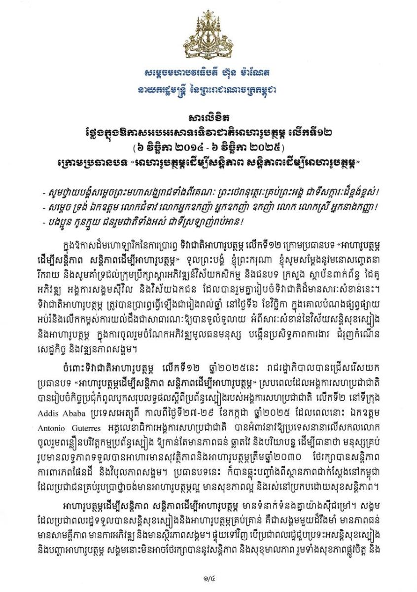 ទិវាជាតិអាហារូបត្ថម្ភលើកទី១២, សម្ដេចធិបតី ហ៊ុន ម៉ាណែត ផ្ដល់អនុសាសន៍១១ចំណុច ដើម្បីធានាសន្តិសុខស្បៀង និងអាហារូបត្ថម្ភ លើកកម្ពស់គុណភាពជីវភាពរស់នៅរបស់ប្រជាជន