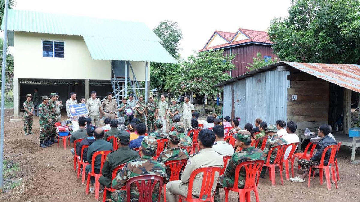 កំពង់ធំ៖ នៅព្រឹកថ្ងៃទី៣ ខែវិច្ឆិកា ឆ្នាំ២០២៥ ឧត្តមសេនីយ៍ទោ សោម ស៊ុន មេបញ្ជាការ តំបន់ប្រតិបត្តិការសឹករងកំពង់ធំ តំណាងគណៈកម្មាធិការសមាគមអតីតយុទ្ធជន និងនិវត្តជនកម្ពុជា ខេត្តកំពង់ធំ អមដំណើរដោយលោក វណ្ណៈ សោភានិត អភិបាលស្រុក ប្រធានសមាគមអតីតយុទ្ធជន និងនិវត្តជនកម្ពុជា ស្រុកប្រាសាទបល្ល័ង្ក បានដឹកនាំសហការី រួមជាមួយអាជ្ញាធរដែនដី ទៅប្រគល់ផ្ទះថ្មី ដែលទើបសាងសង់រួចនៅលើដីកម្មសិទ្ធិ របស់គ្រួសារអតីតយុទ្ធជនពលីដោយសារសង្គ្រាម មានដីតែមានជម្រករស់នៅមិនសមរម្យ នៅភូមិថ្នល់ ឃុំទួលគ្រើល ស្រុកប្រាសាទបល្ល័ង្ក ខេត្តកំពង់ធំ ។