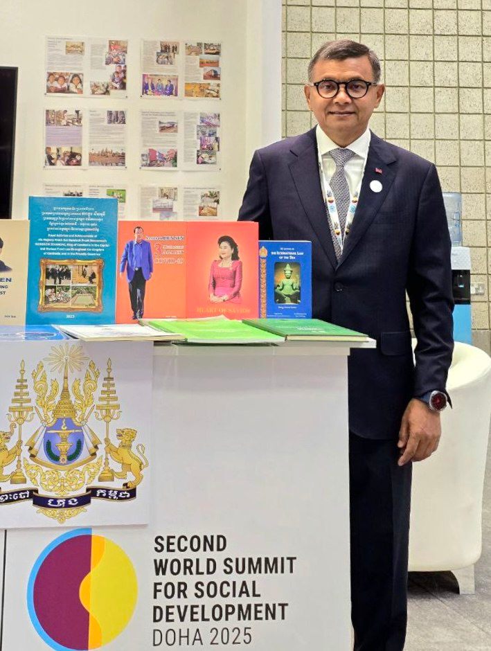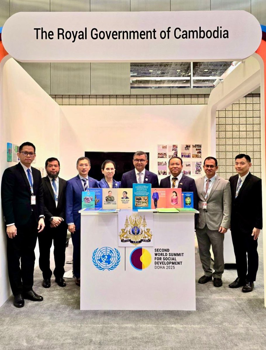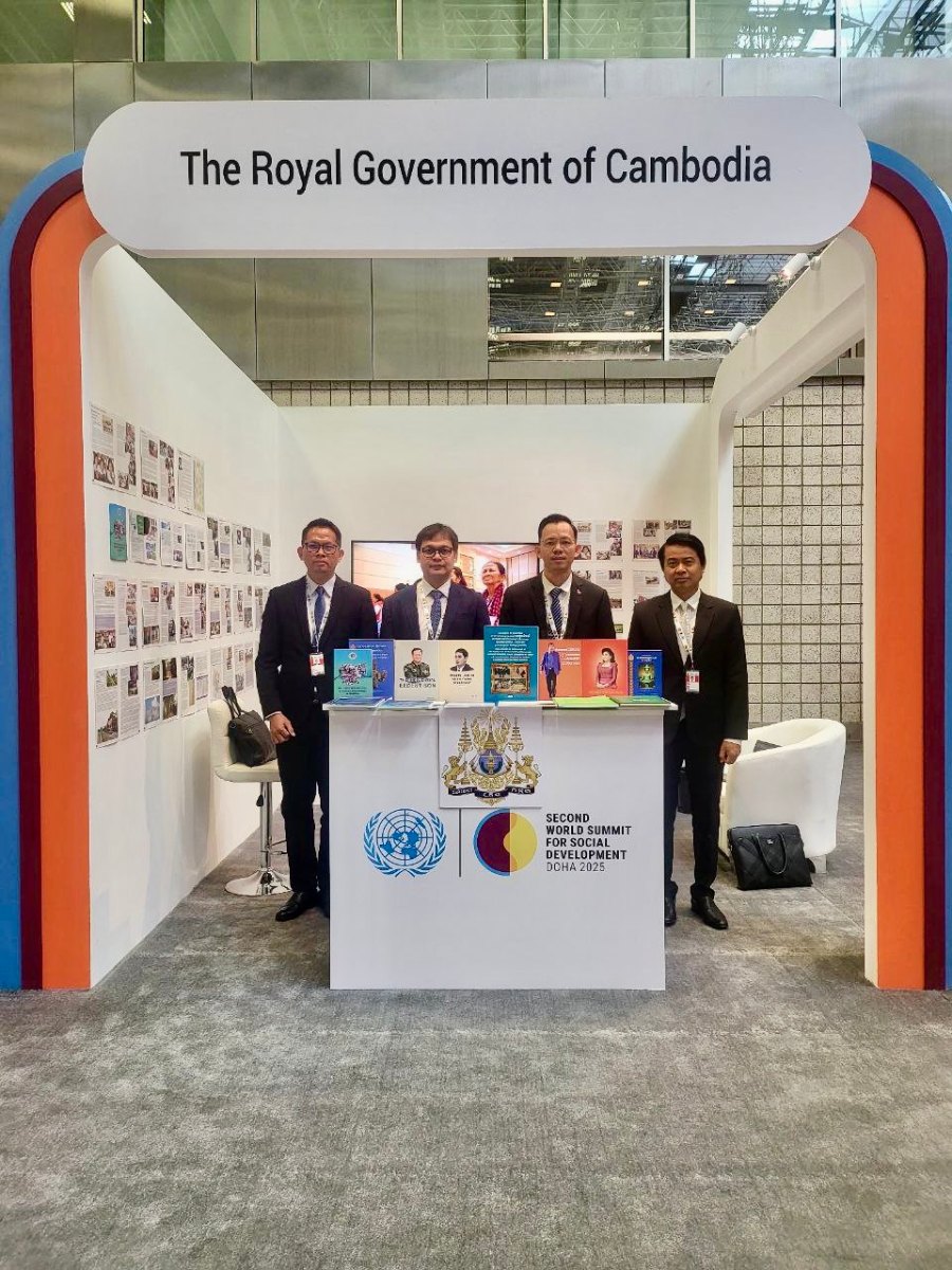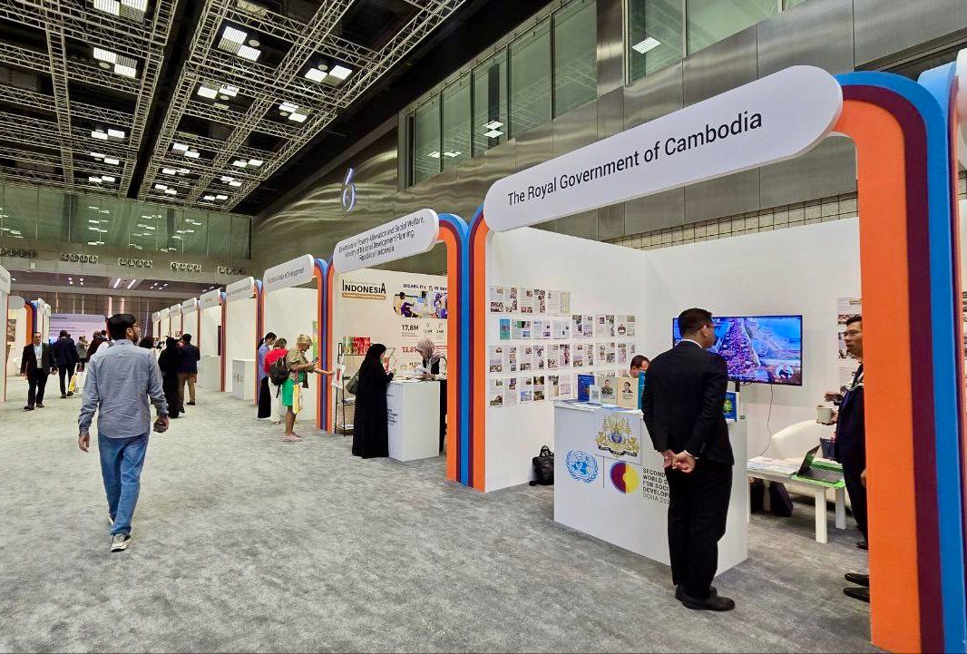 ទីក្រុងដូហា៖ នៅថ្ងៃទី៤ ខែវិច្ឆិកា ឆ្នាំ២០២៥ ក្រសួងអប់រំ យុវជន និងកីឡា ក្នុងនាមព្រះរាជាណាចក្រកម្ពុជា បានតាំងបង្ហាញ ស្តង់ពិព័រណ៍អំឡុងកិច្ចប្រជុំកំពូលពិភពលោកលើកទី២ សម្រាប់ការអភិវឌ្ឍសង្គម (Exhibition Booth during the Second World Summit for Social Development) នៅទីក្រុងដូហា ប្រទេសកាតា ដែលមានការចូលរួមពីស្តង់ពិព័រណ៍របស់បណ្តាប្រទេសសមាជិកអង្គការសហប្រជាជាតិ ស្តង់ពិព័រណ៍របស់អង្គការអន្តរជាតិទូទាំងពិភពលោក ដែលជាដៃគូសន្ទនា និងដៃគូពាក់ព័ន្ធ។