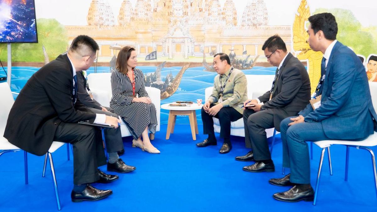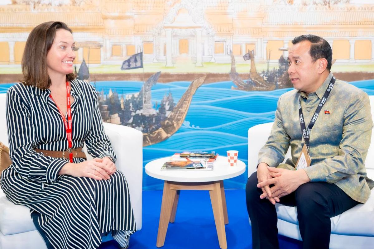 នាឱកាសដឹកនាំគណៈប្រតិភូជាន់ខ្ពស់ក្រសួងទេសចរណ៍ និងក្រុមប្រឹក្សាភិបាលសិក្សាទីផ្សារ និងផ្សព្វផ្សាយទេសចរណ៍កម្ពុជា (CTB) នៅថ្ងៃទី៥ ខែវិច្ឆិកា ឆ្នាំ២០២៥ ឯកឧត្តម ហួត ហាក់ រដ្ឋមន្ត្រីក្រសួងទេសចរណ៍ បានជួបពិភាក្សាការងារជាមួយលោកស្រី Helen Breen នាយិកាផ្នែកលក់របស់ក្រុមហ៊ុន Emirates Airline អំពីកិច្ចសហប្រតិបត្តិការជម្រុញការតភ្ជាប់តាមផ្លូវអាកាស និងការផ្សព្វផ្សាយសក្តានុពលទេសចរណ៍។