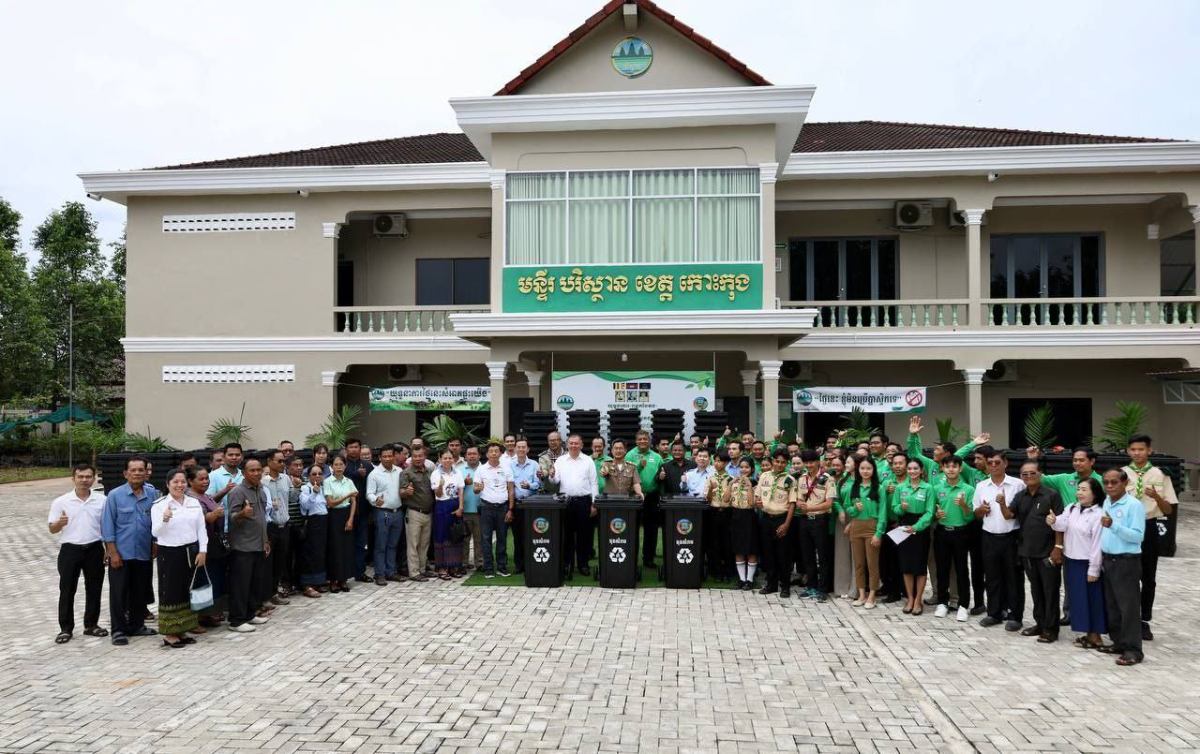 នាព្រឹកថ្ងៃទី៧ ខែវិច្ឆិកា ឆ្នាំ២០២៥ ឯកឧត្តម សាបូ អូហ្សាណូ រដ្ឋលេខាធិការក្រសួងបរិស្ថាន និងជាតំណាងឯកឧត្តមបណ្ឌិត អ៊ាង សុផល្លែត រដ្ឋមន្រ្តីក្រសួងបរិស្ថាន បានអញ្ជើញចូលរួមជាអធិបតី និងបានប្រគល់ធុងសំរាមជូនដល់មូលដ្ឋានសុខាភិបាល សាលារៀន និងវត្តអារាមនៅទូទាំងខេត្តកោះកុង ចំនួន ៩៣៩ធុង ដោយមានការចូលរួមពីថ្នាក់ដឹកនាំនិងមន្រ្តីរាជការក្រសួងបរិស្ថាន តំណាងរដ្ឋបាលខេត្ត មន្ទីរបរិស្ថាន មន្ទីរអប់រំ យុវជន និងកីឡា មន្ទីរធម្មការនិងសាសនា តំណាងរដ្ឋបាលក្រុង-ស្រុក សហភាពសហព័ន្ធយុវជនកម្ពុជាខេត្ត យុវជនសាខាកាកបាទក្រហម យុវជនកាយរឹទ្ធិ និងសិស្សានុសិស្សជាច្រើននាក់នៅខេត្តកោះកុង។