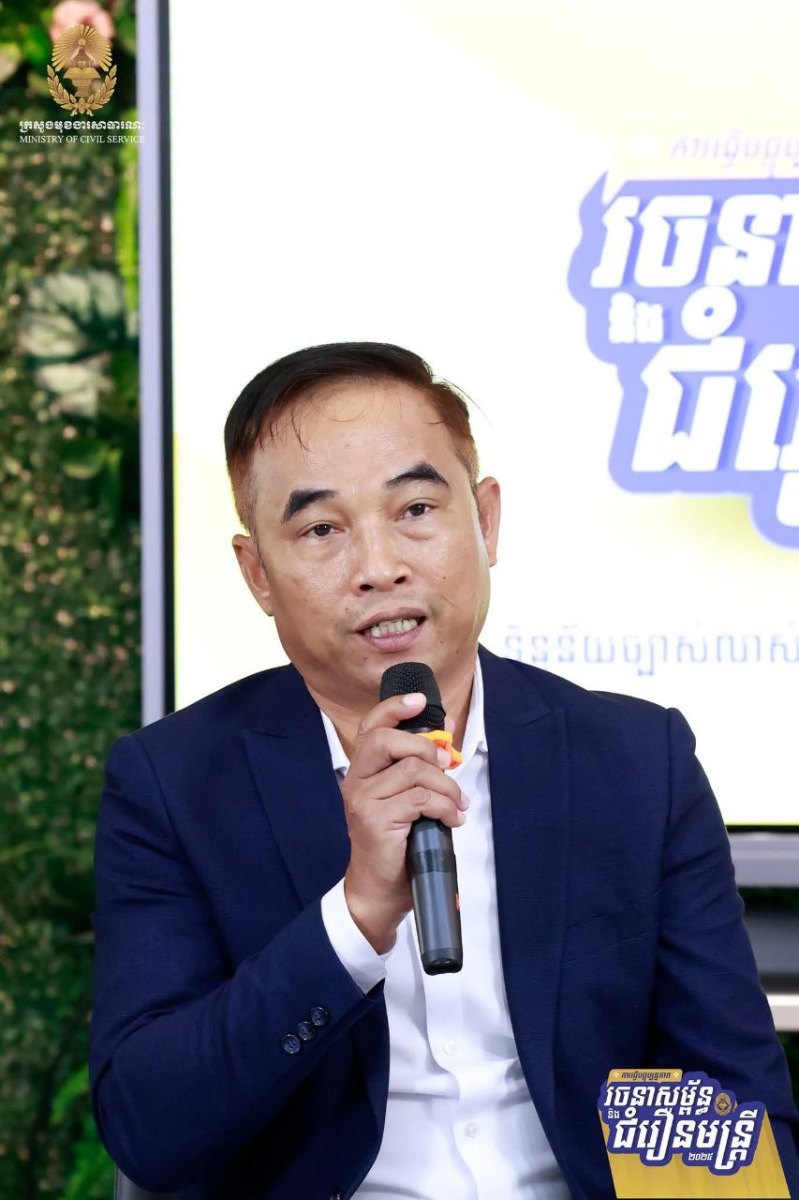 នារសៀលថ្ងៃទី៧ ខែវិច្ឆិកា ឆ្នាំ២០២៥ ក្រុមការងារផ្សព្វផ្សាយព័ត៌មាននៃគណៈកម្មការធ្វើបច្ចុប្បន្នភាពរចនាសម្ព័ន្ធ និងជំរឿនមន្ត្រីជាក់ស្ដែង នៅតាមរចនាសម្ព័ន្ធនៃគ្រឹះស្ថានសិក្សាសាធារណៈ អង្គភាពសុខាភិបាលមូលដ្ឋាន និងក្រសួង ស្ថាប័ន ចំណុះអង្គការនីតិប្រតិបត្តិ បានរៀបចំវេទិកាជាមួយអ្នកសារព័ត៌មាន ដើម្បីផ្តល់ព័ត៌មានលម្អិតអំពីដំណើរការនៃការអនុវត្តការងារ និងលទ្ធផលដែលសម្រេចបានឆ្ពោះទៅកាន់ការចុះជំរឿនមន្ត្រីជាក់ស្តែងនៅតាមរចនាសម្ព័ន្ធគោលដៅ ដែលរាជរដ្ឋាភិបាលបានកំណត់ ពិសេសការអនុវត្តមុនគេដោយផ្ទាល់នៅក្រសួងមុខងារសាធារណៈនាពេលខាងមុខនេះ។ ក្នុងវេទិកានារសៀលនេះ មានការអញ្ជើញចូលរួមពីវាគ្មិនកិត្តិយស ៦រូបដែលជាថ្នាក់ដឹកនាំនៃក្រសួងមុខងារសាធារណៈ និងមន្ត្រីជំនាញ ដែលជាក្រុមការងារទាំងអស់ នៃគណៈកម្មការធ្វើបច្ចុប្បន្នភាពរចនាសម្ព័ន្ធ និងជំរឿនមន្ត្រីជាក់ស្ដែងនៅតាមរចនាសម្ព័ន្ធនៃគ្រឹះស្ថានសិក្សាសាធារណៈ អង្គភាពសុខាភិបាលមូលដ្ឋាន និងក្រសួង ស្ថាប័នចំណុះអង្គការនីតិប្រតិបត្តិ ព្រមទាំងអ្នកសារព័ត៌មានជាច្រើនរូប សរុបប្រមាណ ៥០នាក់។