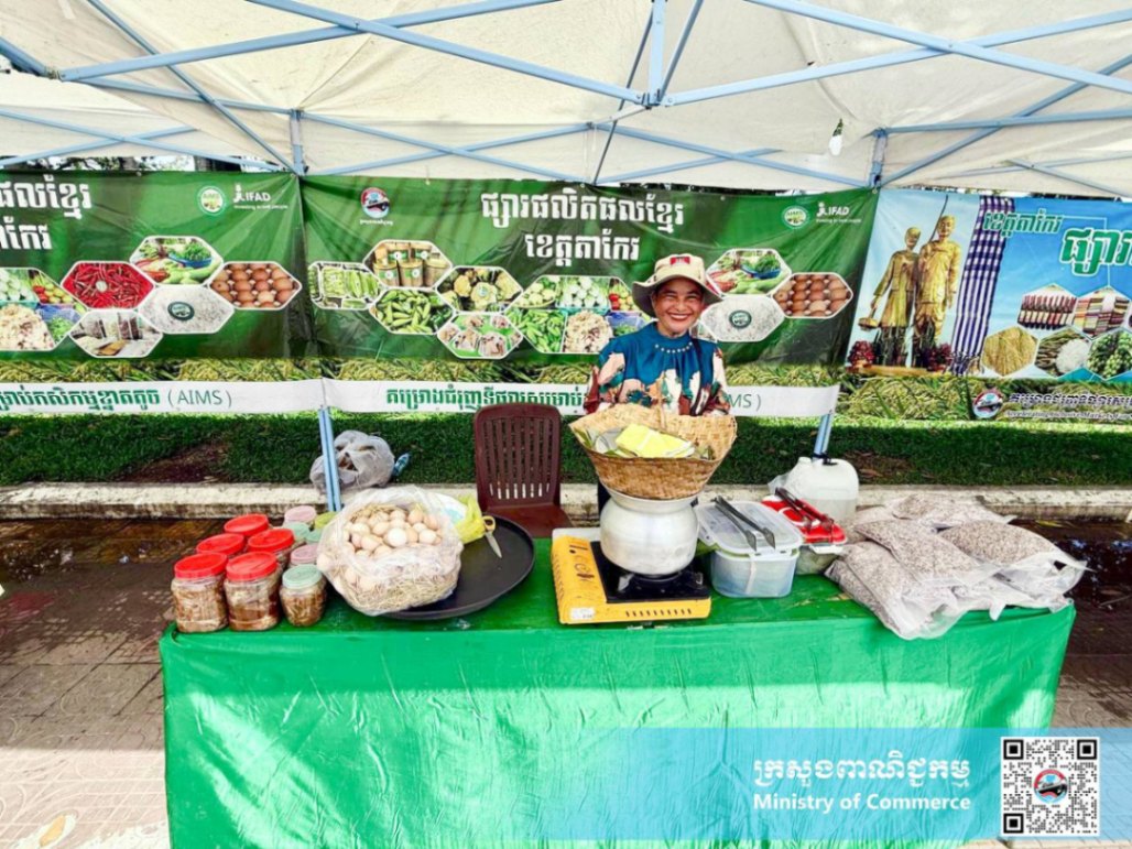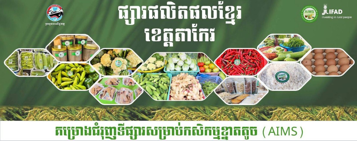 សូមបញ្ជាក់ថា ក្រោមការដឹកនាំ និងការគាំទ្ររបស់ក្រសួងពាណិជ្ជកម្ម និងការសម្របសម្រួលផ្តល់ទីតាំងរបស់រដ្ឋបាលខេត្ត មន្ទីរពាណិជ្ជកម្មខេត្តតាកែវ ក្រោមគម្រោងជំរុញទីផ្សារសម្រាប់កសិកម្មខ្នាតតូច (AIMS) នៃក្រសួងពាណិជ្ជកម្ម បានរៀបចំ និងដាក់ឲ្យដំណើរការផ្សារលក់ផលិតផលខ្មែរ ចាប់តាំងពីឆ្នាំ២០១៩ រហូតមកដល់បច្ចុប្បន្ន។