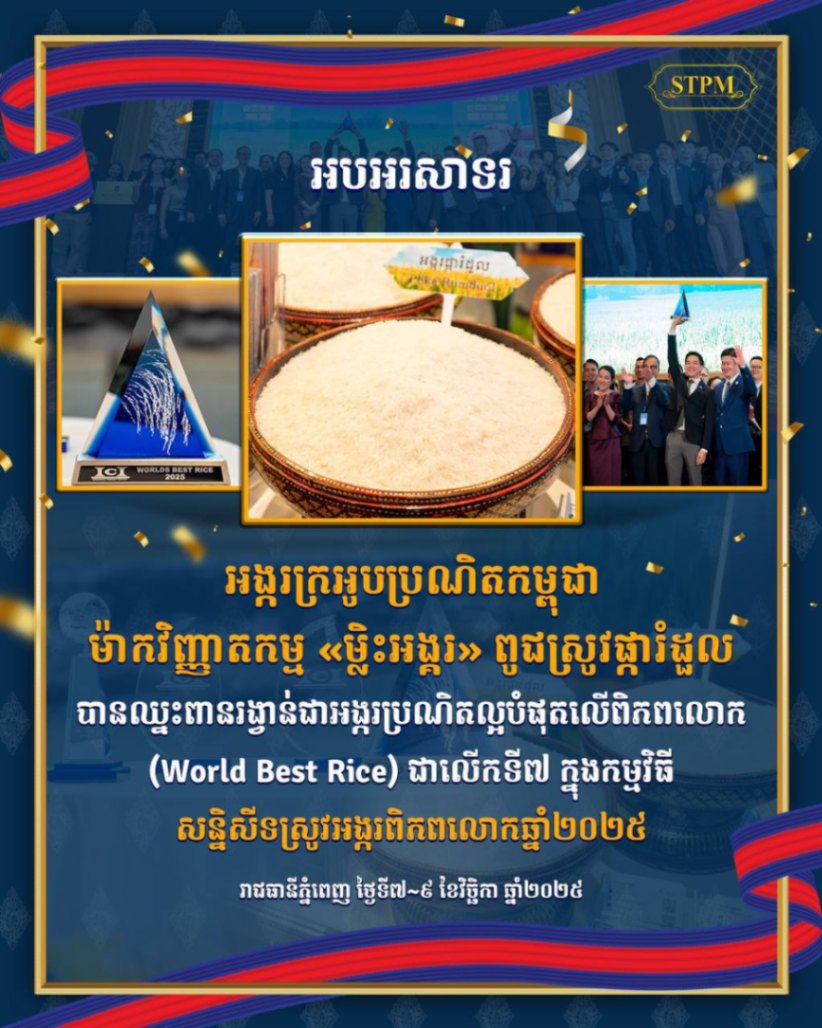 ឆ្នាំ២០២៥ ជាលើកទី៧ ដែលកម្ពុជាបានឈ្នះពានរង្វាន់អង្ករល្អបំផុតនៅលើពិភពលោក