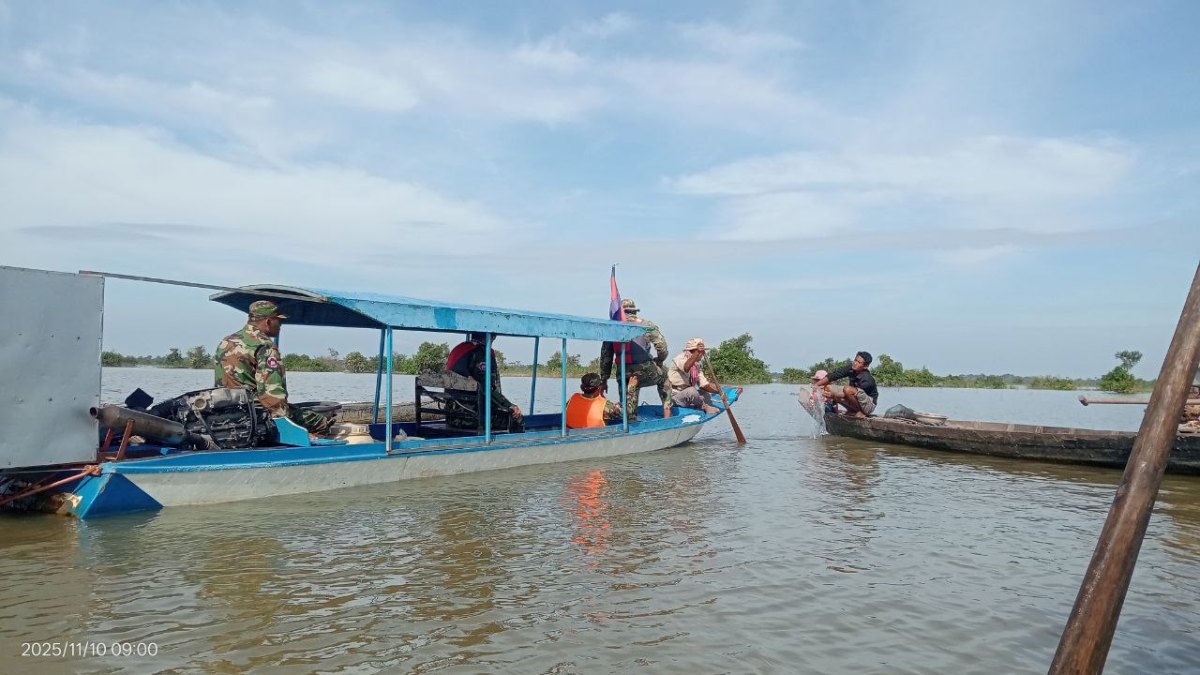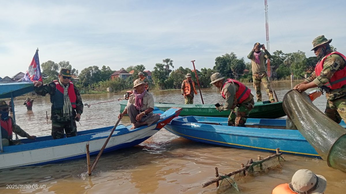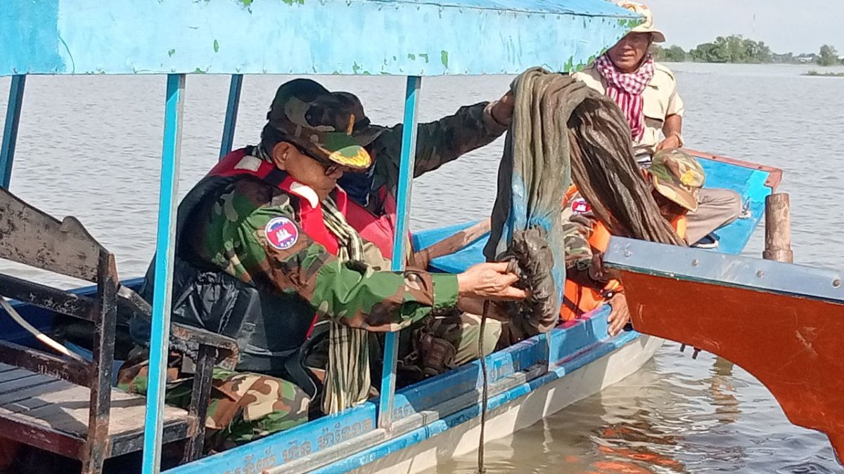 កំពង់ឆ្នាំង៖ កម្លាំងយោធា ដឹកនាំដោយលោកឧត្តមសេនីយ៍ត្រី អ៊ុំ សុភា មេបញ្ជាការតំបន់ប្រតិបត្តិការសឹករងកំពង់ឆ្នាំង នៅថ្ងៃទី១០ ខែវិច្ឆិកា ឆ្នាំ២០២៥នេះ បានចុះបង្ក្រាបបទល្មើសនេសាទ(របាំងស្បៃមុង) ក្នុងភូមិសាស្ត្រ ស្រុកកំពង់ត្រឡាច ខេត្តកំពង់ឆ្នាំង។ ប្រតិបត្តិការនេះ នឹងបន្តជារៀងរហូតដោយត្រូវធ្វើទាំងក្នុងទន្លេសាប ព្រែក បឹង តំបន់អភិរក្ស ដែលមានបទល្មើសនេសាទទាំងនេះ។