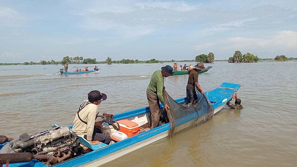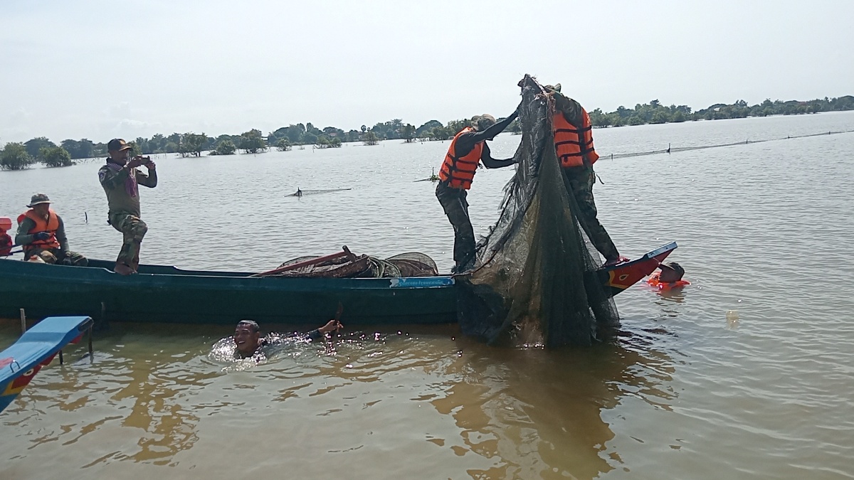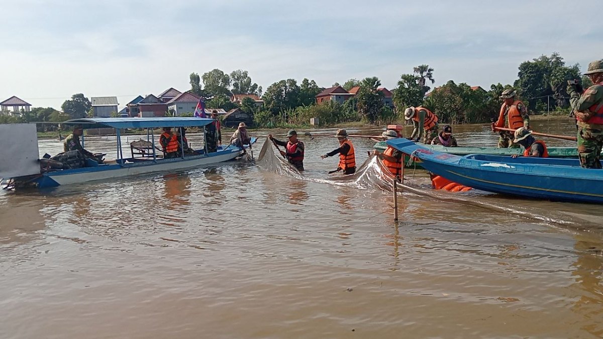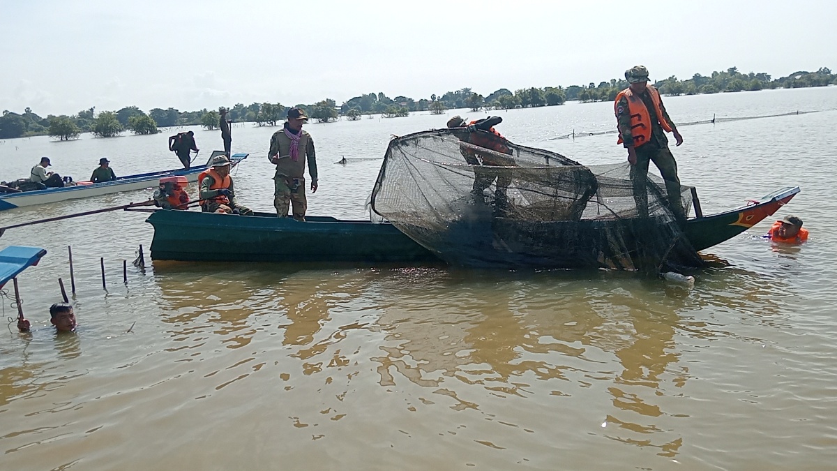 កម្លាំងយោធា បើកប្រតិបត្តការបង្ក្រាបបទល្មើសនេសាទរបាំងស្បៃមុង ក្នុងភូមិសាស្ដ្រស្រុកកំពង់ត្រឡាច