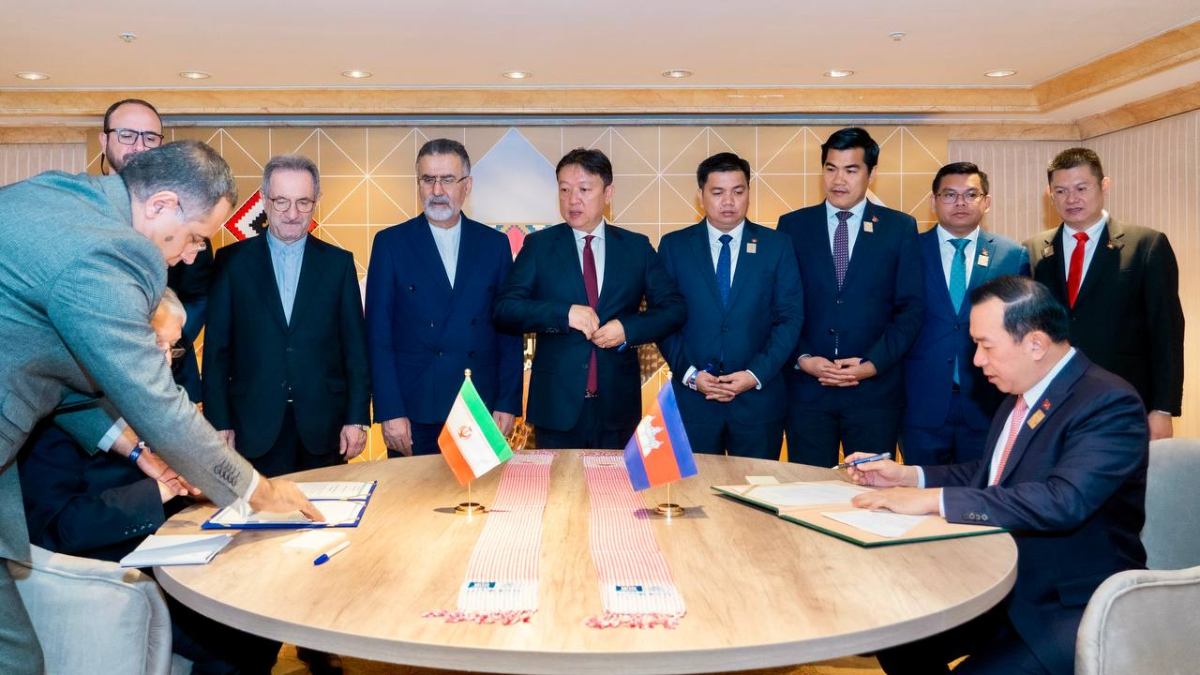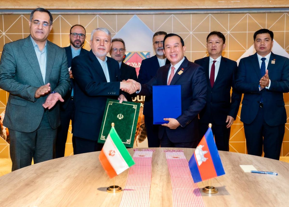 ដោយទទួលបានគោលការណ៍អនុញ្ញាតដ៏ខ្ពង់ខ្ពស់អំពី សម្តេចមហាបវរធិបតី ហ៊ុន ម៉ាណែត នាយករដ្ឋមន្ត្រី នៃព្រះរាជាណាចក្រកម្ពុជា និងក្នុងឱកាសដឹកនាំគណៈប្រតិភូជាន់ខ្ពស់ក្រសួងទេសចរណ៍ ចូលរួមកិច្ចប្រជុំមហាសន្និបាតអង្គការទេសចរណ៍សហប្រជាជាតិ លើកទី២៦ (UN Tourism- 26th General Assembly) នៅរាជធានីរីយ៉ាដ នាព្រឹកថ្ងៃទី១០ ខែវិច្ឆិកា ឆ្នាំ២០២៥ ឯកឧត្តម ហួត ហាក់ រដ្ឋមន្រ្តីក្រសួងទេសចរណ៍ នៃព្រះរាជាណាចក្រកម្ពុជា និងឯកឧត្តម Seyed Reza Salehi Amiri រដ្ឋមន្រ្តីក្រសួងបេតិកភណ្ឌវប្បធម៌ ទេសចរណ៍ និងសិប្បកម្មនៃសាធារណរដ្ឋឥស្លាមអ៊ីរ៉ង់ ដែលជាប្រទេសដ៏ធំ និងមានសេដ្ឋកិច្ចនំាមុខដ៏សំខាន់មួយក្នុងតំបន់មជ្ឈិមបូព៌ា បានចុះហត្ថលេខាលើអនុស្សរណៈនៃការយោគយល់គ្នាស្តីពីកិច្ចសហប្រតិបត្តិការទេសចរណ៍កម្ពុជា-អ៊ីរ៉ង់ ដើម្បីរឹតចំណងមិត្តភាព និងកិច្ចសហប្រតិបត្តិការរវាងរាជរដ្ឋាភិបាល និងប្រជាជននៃប្រទេសទាំងពីរ ឱ្យកាន់តែត្រូវបានពង្រឹង និងពង្រីកជាលំដាប់។