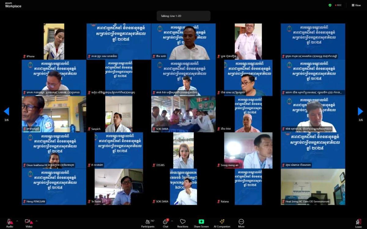 នៅរសៀល ថ្ងៃទី១១ ខែវិច្ឆិកា ឆ្នាំ២០២៥ ឯកឧត្តមសាស្ត្រាចារ្យរដ្ឋមន្រ្តី ឈាង រ៉ា បានដឹកនាំវគ្គភាពអ្នកដឹកនាំនិងនវានុវត្តន៍ ដែលមានមន្រ្តីសុខាភិបាលគ្រប់ឋានានុក្រមក្រោមឱវាទក្រសួងសុខាភិបាលចូលរួមតាមប្រព័ន្ធ វីដេអូសន្និសីទ (Zoom) សរុបចំនួន ៣១២៧ នាក់។ ឯកឧត្តមសាស្រ្តាចារ្យរដ្ឋមន្រ្តី បង្ហាញពីក្តីសង្ឃឹមជឿជាក់លើមន្រ្តីសុខាភិបាលតាមមូលដ្ឋាន និងបានកោតសរសើរដល់មន្រ្តីសុខាភិបាលមូលដ្ឋានជាពិសេស អ្នកដែលបំរើការនៅតាមប្រជុំកោះ ជួរភ្នំ និងតាមតំបន់ព្រៃឆ្ងាយដាច់ស្រយាល ដែលបានជម្នះនឹងការលំបាកគ្រប់ប្រភេទក្នុងការបម្រើសេវាសុខភាពដល់ប្រជាជនបានគ្រប់ពេលវេលា។