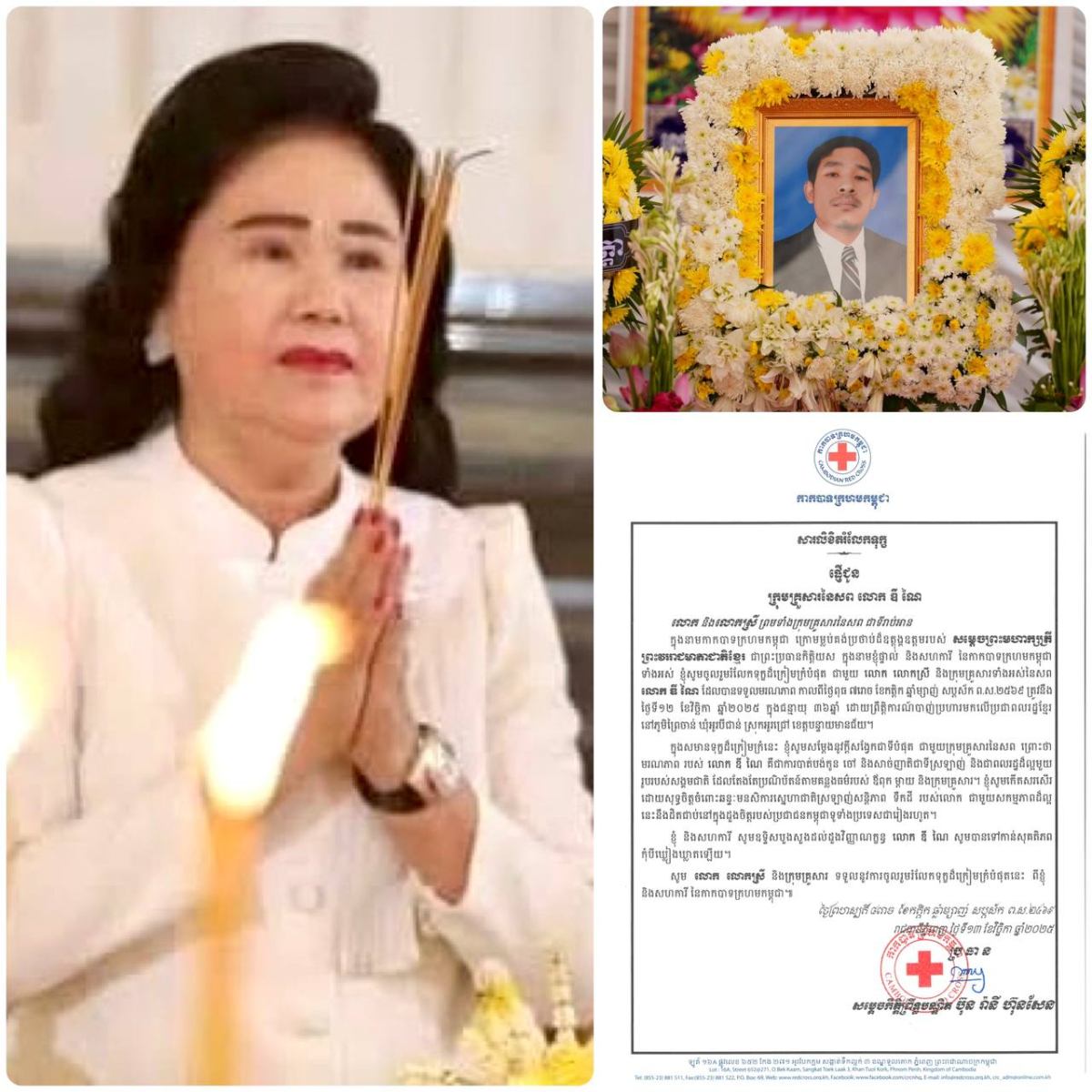 ភ្នំពេញ ៖ សម្តេចកិត្តិព្រឹទ្ធបណ្ឌិត ប៊ុន រ៉ានី ហ៊ុនសែន ប្រធានកាកបាទក្រហមកម្ពុជា នៅថ្ងៃទី១៣ ខែវិច្ឆិកា ឆ្នាំ២០២៥នេះ បានផ្ញើសារលិខិតរំលែកទុក្ខដ៏ក្រៀមក្រំជូនក្រុមគ្រួសារនៃសព លោក ឌី ណៃ ដែលបានមរណភាពក្នុងព្រឹត្តិការណ៍បាញ់ប្រហារមកលើប្រជាពលរដ្ឋខ្មែរ នៅភូមិព្រៃចាន់ ឃុំអូរបីជាន់ ស្រុកអូរជ្រៅ ខេត្តបន្ទាយមានជ័យ។