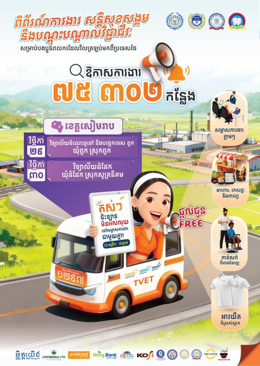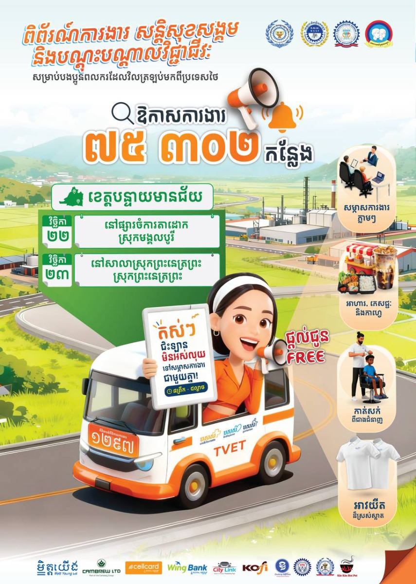 សហជីពនៅកម្ពុជា៖ ក្រសួងការងារសកម្មក្នុងការរកការងារជូនពលករខ្មែរដែលទើបត្រឡប់មកពីថៃ និងអំពាវនាវពលករមិនទាន់មានការងារចូលរួមពិព័រណ៍ការងារស្អែកនេះ