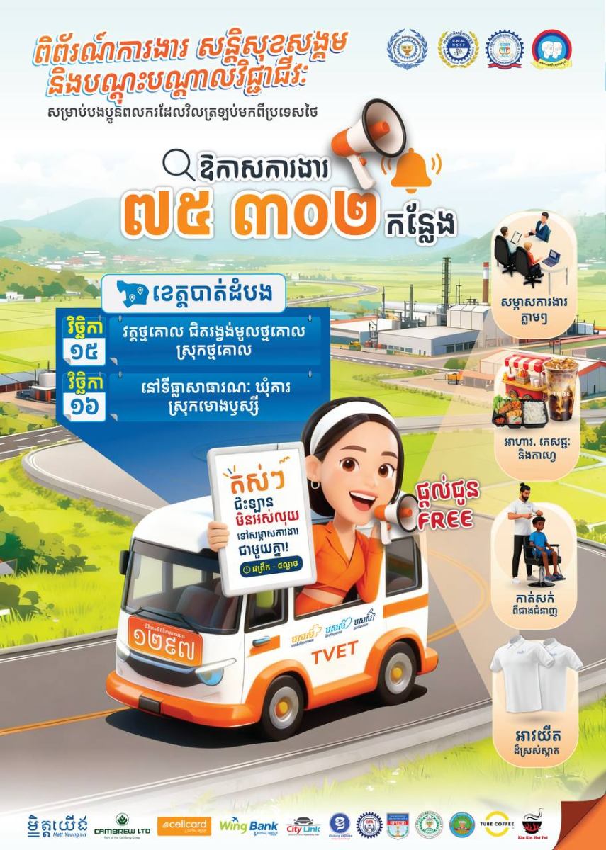 រម្លឹកដល់បងប្អូនពលករខ្មែរត្រឡប់មកពីប្រទេសថៃ! ស្អែកនេះក្រសួងការងារនឹងបើកពិព័រណ៍ផ្តល់ឱកាសការងារនៅខេត្តបាត់ដំបង