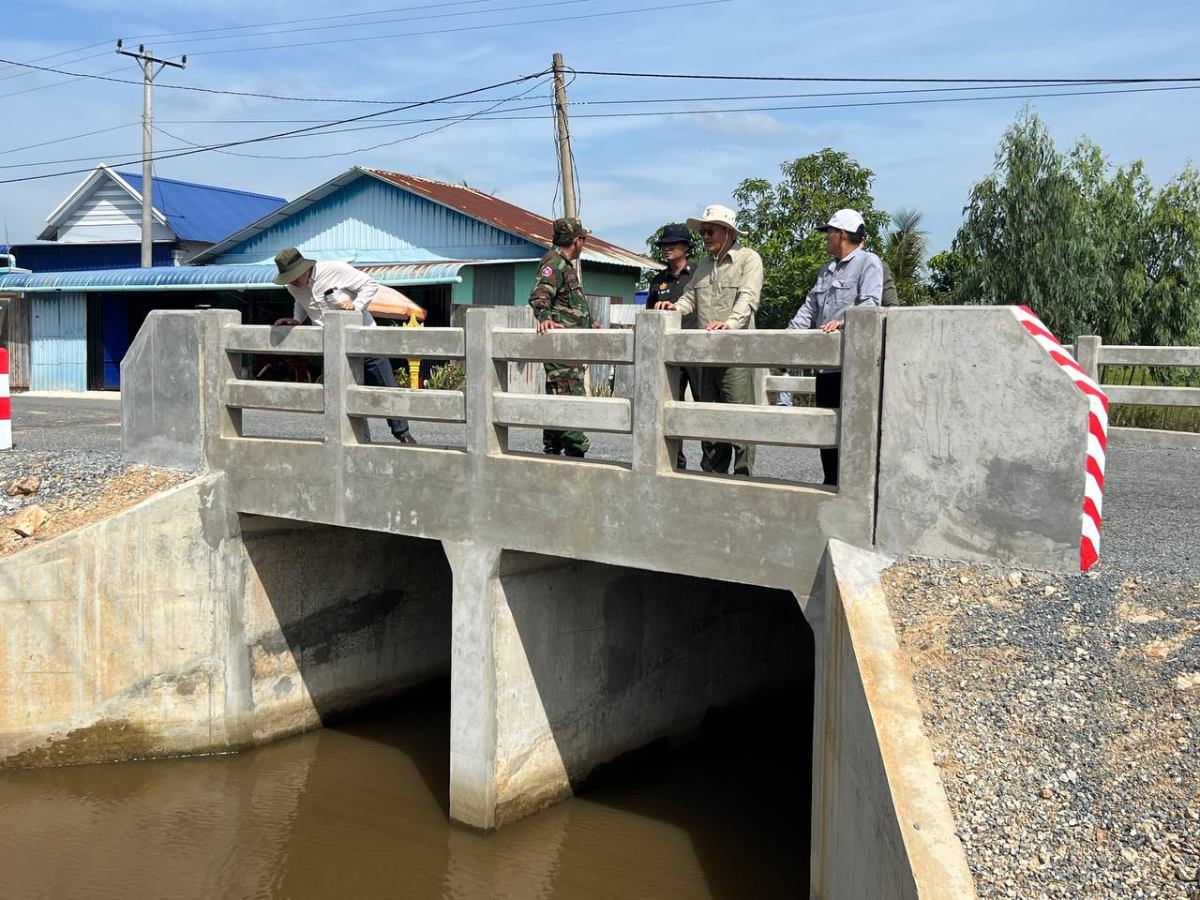 ជុំវិញផ្លូវខាងលើនេះ, ឯកឧត្តមបានឯកភាព និងវាយតម្លៃខ្ពស់ ចំពោះការខិតខំប្រឹងប្រែងរបស់នាយកដ្ឋានវិស្វកម្ម ក្រសួង ការពារជាតិ ដែលបានអនុវត្តសម្រេចទៅតាមផែនការ ជាក់ស្តែងការងារជួសជុលស្តារឡើងវិញផ្លូវក្រាលកៅស៊ូពីរជាន់ DBST ចំនួន ១ ខ្សែ ប្រវែង ២ ៥០០ម៉ែត្រ ទទឹង ៧ម៉ែត្រ ស្ថិតនៅភូមិតាឡូង ឃុំកំពែង ស្រុកព្រៃកប្បាស ទៅភូមិអំពិល ឃុំពន្លៃ ស្រុកអង្គរបុរី ខេត្ត តាកែវ និងគម្រោងមួយទៀតនៅលើការងារស្ថាបនាផ្លូវក្រាលដីល្បាយថ្មភ្នំចំនួន ២ខ្សែ ប្រវែងសរុប ៣ ៥០០ ម៉ែត្រ ទទឹង ៨ ម៉ែត្រ និងសំណង់សិល្បការ្យផ្សេងៗទៀត ស្ថិតនៅភូមិដំណាក់ត្រាច ទៅភូមិព្រៃស្រឡែង ឃុំទួលអំពិល ស្រុកបរសេដ្ឋ ខេត្តកំពង់ស្ពឺ (ជាគម្រោងបញ្ចប់សុពលភាព) ដោយផ្លូវទាំងនោះបាននិងកំពុងផ្តល់ប្រយោជន៍គ្រប់បែបយ៉ាង គឺមិនត្រឹមបម្រើដល់ប្រជាជននៅ មូលដ្ឋានប៉ុណ្ណោះទេ ផ្លូវទាំងនេះក៏បម្រើដល់ការដឹកជញ្ជូនគ្រប់អន្តរវិស័យ ការធ្វើដំណើរ និងការរកស៊ីទទួលទានផ្សេងៗជាដើម៕