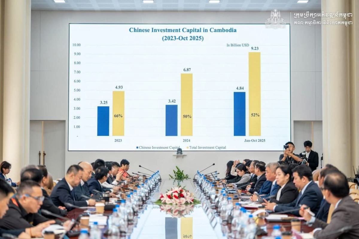 ក្នុងជំនួបនេះ ឯកឧត្តមក៏បានជម្រាបជូនគណៈប្រតិភូពីទំនាក់ទំនងការទូត និងទំនាក់ទំនងមិត្តភាពកម្ពុជា-ចិន ដែលត្រូវបាន យកចិត្តទុកដាក់ពីសំណាក់ថ្នាក់ដឹកនាំគ្រប់ជាន់ថ្នាក់នៃប្រទេសទាំងពីរ និងបានលើកទ្បើងពីភាពល្អប្រសើរ នៃស្ថានភាពវិនិយោគនៅ កម្ពុជា ដែលមានភាពបើកចំហ និងអំណោយផល ដោយឆ្លុះបញ្ចាំងតាមរយៈកំណើនវិនិយោគ។ រីឯទំហំវិនិយោគរបស់ចិន នៅតែរក្សា បាននូវចំណាត់ថ្នាក់លេខ១ ក្នុងរយៈពេលមួយទស្សវត្សរ៍នេះ។ ឯកឧត្តមអគ្គលេខាធិការ ក៏បានជម្រាបជូនថា កម្ពុជាបានមានគំនិតផ្តួច ផ្តើមឧស្សាហកម្មសមាហរណ សំដៅចាប់យកនូវការវិនិយោគរបស់ចិនក្នុងចង្កោមឧស្សាហកម្ម ដែលអាចធានាដល់ខ្សែច្រវាក់ផ្គត់ផ្គង់ ពិសេសការផលិតវត្ថុធាតុដើម និងផលិតផល ពាក់កណ្តាលសម្រេច បញ្ហានេះ,ឯកឧត្តម ស្នើឱ្យគណៈប្រតិភូគិតគូរពីការវិនិយោគក្នុងការ ផលិតវត្ថុធាតុដើម ឬផលិតផលពាក់កណ្តាលសម្រេចនៅកម្ពុជាដែលបច្ចុប្បន្នកំពុងមានសក្តានុពលខ្ពស់។