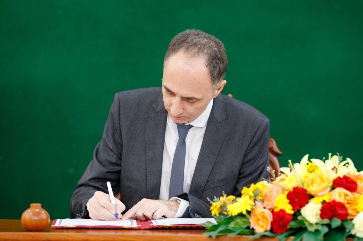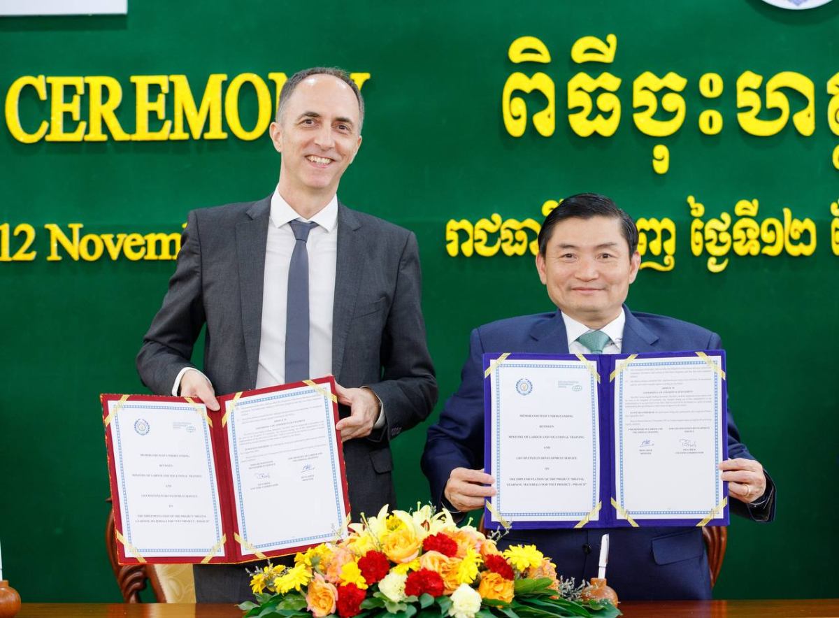 ឯកឧត្តម ហេង សួរ រដ្ឋមន្ត្រីក្រសួងការងារ និងបណ្តុះបណ្តាលវិជ្ជាជីវៈ និងលោក Pius Frick អ្នកសម្របសម្រួលប្រចាំប្រទេសរបស់ភា្នក់ងារអភិវឌ្ឍន៍លិចតិនស្តាញ(Liechtenstein Development Service – LED) បានចុះអនុស្សរណៈ ស្តីពី ការអនុវត្តគម្រោង “សម្ភារៈសិក្សាឌីជីថលសម្រាប់ អ.ប.វ.- ដំណាក់កាលទី២” ដើម្បីពង្រឹងការអប់រំបែបឌីជីថលនៅកម្ពុជា នារសៀលថ្ងៃទី១២ ខែវិច្ឆិកា ឆ្នាំ២០២៥ នៅទីស្តីការក្រសួងការងារ និងបណ្តុះបណ្តាលវិជ្ជាជីវៈ។