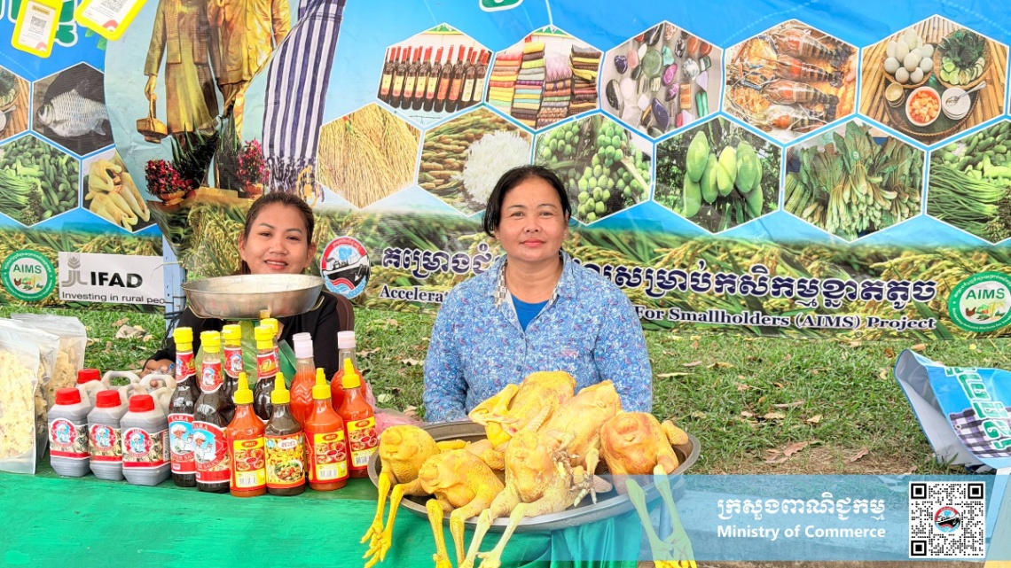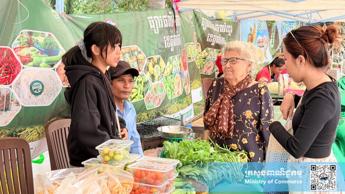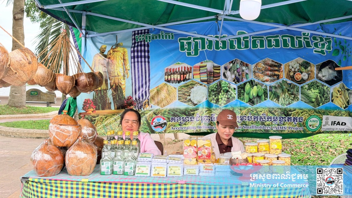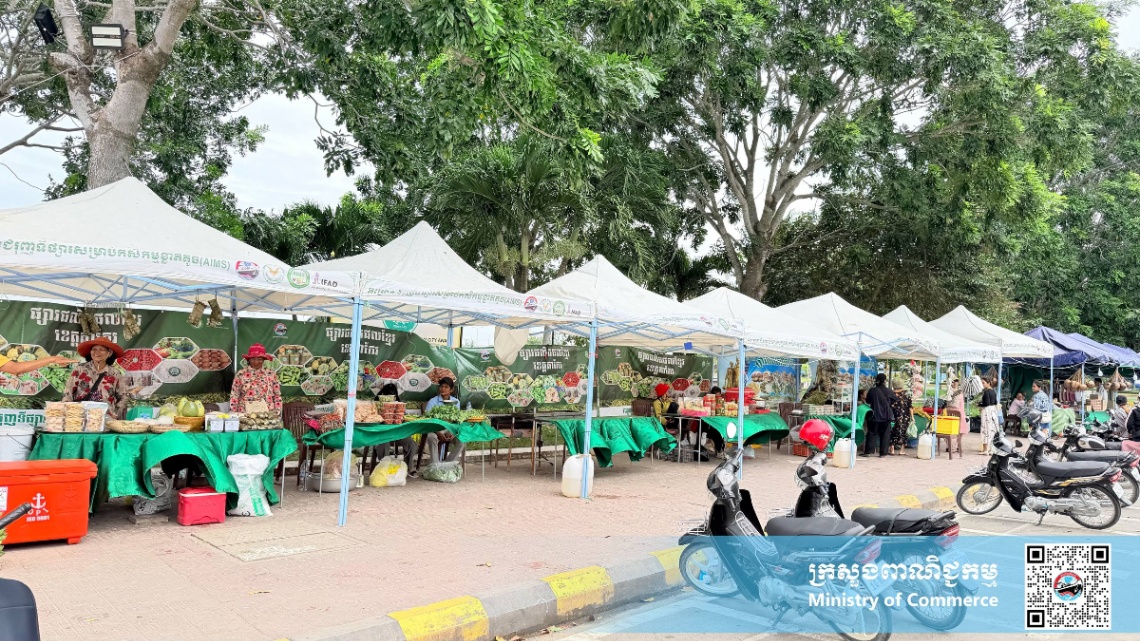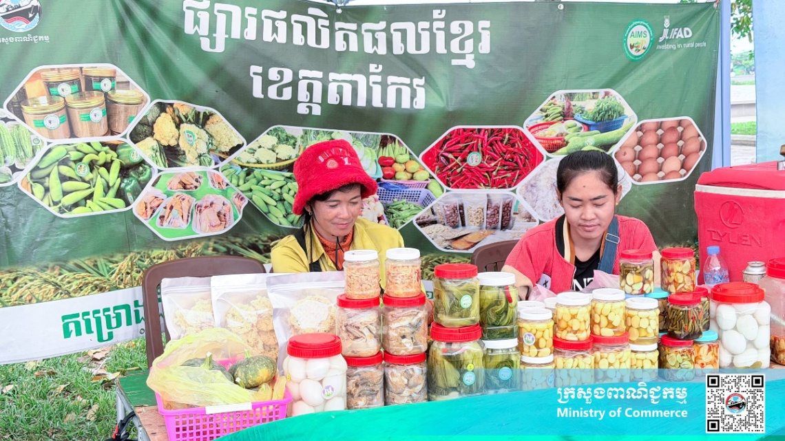 សូមបញ្ជាក់ថា ក្រោមការដឹកនាំ និងការគាំទ្ររបស់ក្រសួងពាណិជ្ជកម្ម និងការសម្របសម្រួលផ្តល់ទីតាំងរបស់រដ្ឋបាលខេត្ត មន្ទីរពាណិជ្ជកម្មខេត្តតាកែវ ក្រោមគម្រោងជំរុញទីផ្សារសម្រាប់កសិកម្មខ្នាតតូច (AIMS) នៃក្រសួងពាណិជ្ជកម្ម បានរៀបចំ និងដាក់ឲ្យដំណើរការផ្សារលក់ផលិតផលខ្មែរ ចាប់តាំងពីឆ្នាំ២០១៩ រហូតមកដល់បច្ចុប្បន្ន។