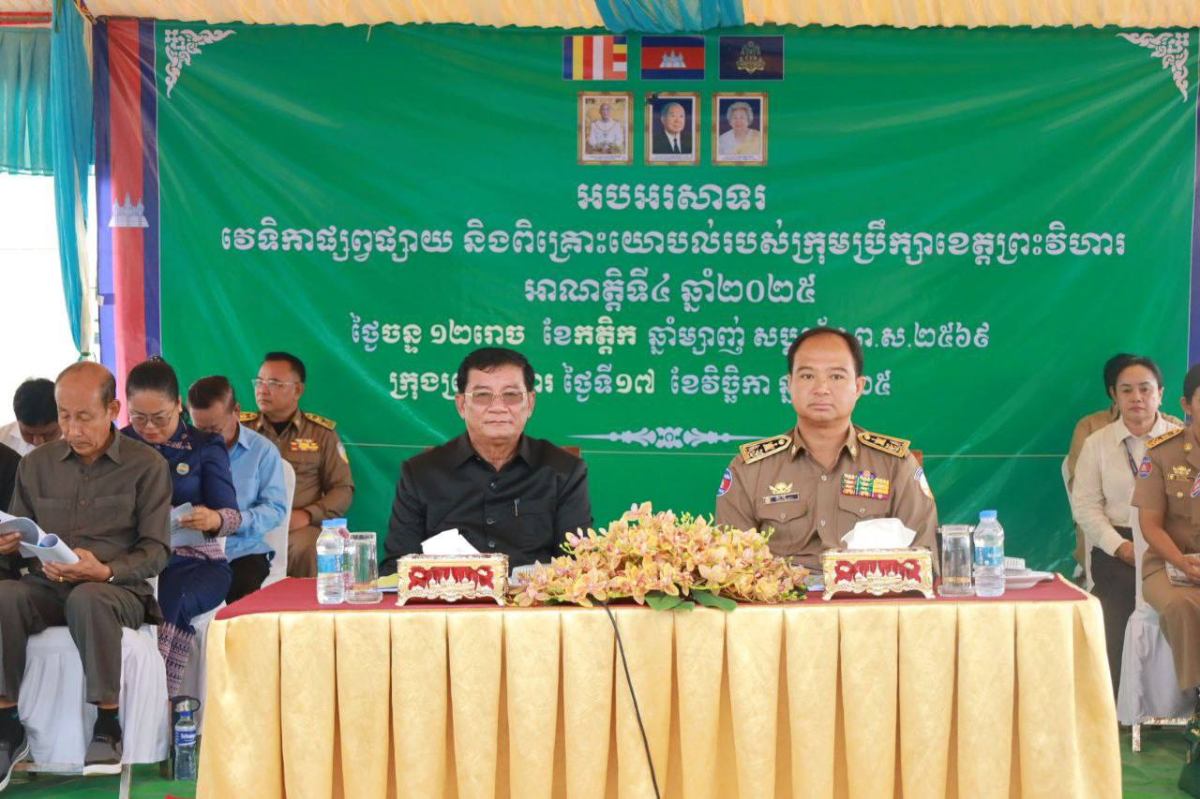វេទិការផ្សព្វផ្សាយ និងពិគ្រោះយោបល់របស់ក្រុមប្រឹក្សាខេត្តព្រះវិហារ អាណត្តិទី៤ ឆ្នាំ២០២៥ ដើម្បីស្ដាប់នូវបញ្ហាប្រឈម សំណូមពរ និងដោះស្រាយនូវសំណើរ ដែលជាតម្រូវការចំបាច់នានារបស់ប្រជាពលរដ្ឋក្នុងក្រុងព្រះវិហារ ក្រោមអធិបតីភាពឯកឧត្តម ប្រាក់ សុវណ្ណ ប្រធានក្រុមប្រឹក្សាខេត្ត និងឯកឧត្តម គីម រិទ្ធី អភិបាលខេត្តព្រះវិហារ ដែលរៀបចំធ្វើឡើងនៅបរិវេណរមណីយដ្ឋានទំនប់៩៥ នាព្រឹកថ្ងៃទី១៧ ខែ វិឆ្ឆិកា ឆ្នាំ២០២៥។