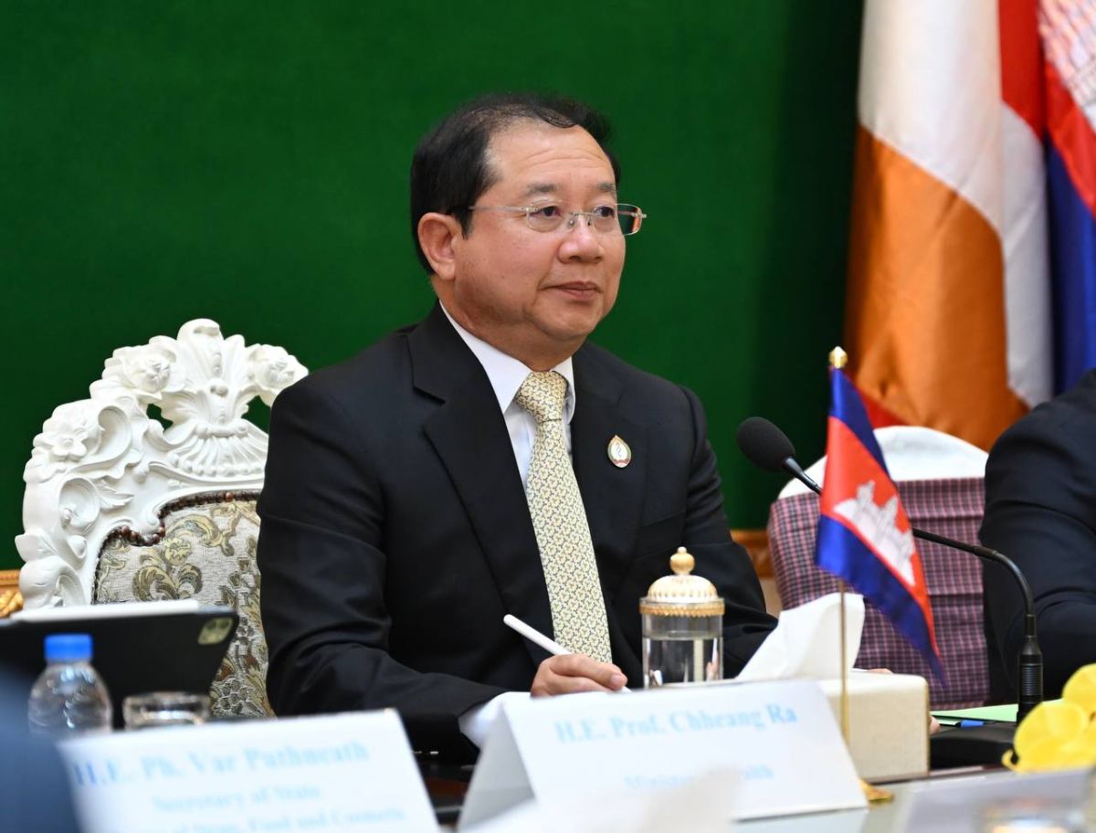 នារសៀលថ្ងៃចន្ទ ទី១៧ ខែវិច្ឆិកា ឆ្នាំ២០២៥ នៅទីស្តីការក្រសួងសុខាភិបាល ឯកឧត្តមសាស្ត្រាចារ្យ ឈាង រ៉ា រដ្ឋមន្ត្រីក្រសួងសុខាភិបាល ទទួលជួប លោកស្រី Bridgette L. Walker ភារៈធារី នៃស្ថានទូតសហរដ្ឋអាមេរិក ប្រចាំព្រះរាជាណាចក្រកម្ពុជា និងគណៈប្រតិភូ។