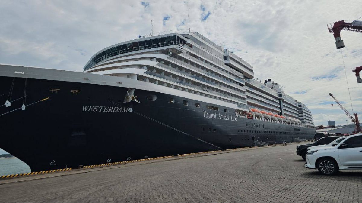 ព្រះសីហនុ៖ នាវាទេសចរណ៍ MS Westerdam នៅវេលាម៉ោង ៦៖២០នាទីព្រឹក ថ្ងៃទី១៨ ខែវិច្ឆិកា ឆ្នាំ២០២៥ បានចូលចតនៅកំពង់ផែស្វយ័តអន្តរជាតិ ក្រុងព្រះសីហនុ រយៈពេល១ថ្ងៃ នាំភ្ញៀវទេសចរណ៍ចម្រុះជាតិសាសន៍ មកទស្សនាខេត្តព្រះសីហនុ។