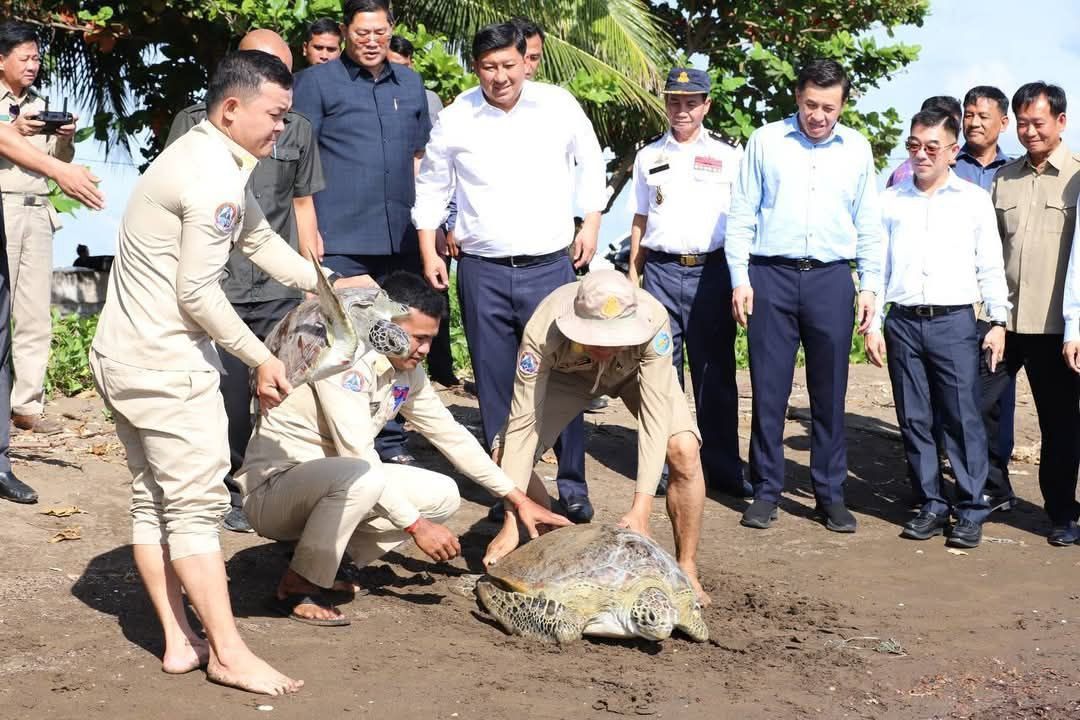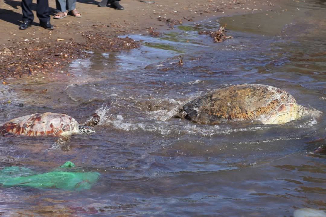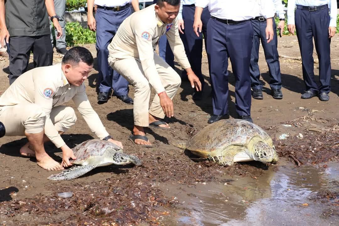 អណ្តើកសមុទ្រ២ក្បាល ត្រូវបានលែងចូលសមុទ្រវិញ ក្រោយទទួលបានពីអ្នកនេសាទ