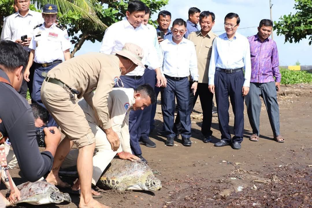 កម្លាំងខណ្ឌរដ្ឋបាលជលផលខេត្តកែប បានទទួលអណ្ដើកសមុទ្រ(ល្មិច) ចំនួន២ក្បាលពីប្រជានេសាទរស់នៅកោះពោធិ៍ តាមរយៈស្នាក់ការសន្តិសុខ លម្ហសមុទ្រប្រចាំកោះពោធិ៍ ដោយអណ្តើកទាំងនេះត្រូវបានកឹបស្លាកលេខ នឹងលែងចូលសមុទ្រវិញ ក្រោមអធិបតីភាព ឯកឧត្តម សាយ សំអាល់ ឧបនាយករដ្ឋមន្រ្តី រដ្ឋមន្រ្តីក្រសួងរៀបចំដែនដី នគរូបនីយកម្ម និងសំណង់ និងជាប្រធានក្រុមការងាររាជរដ្ឋាភិបាលចុះមូលដ្ឋានខេត្តកែប នារសៀលថ្ងៃទី១៨ ខែវិច្ឆិកា ឆ្នាំ២០២៥ នេះ។