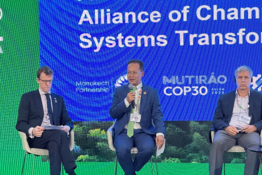 កម្ពុជាត្រៀមខ្លួនជាស្រេចដើម្បីបន្តចូលរួមចំណែកចែករំលែកបទពិសោធន៍ និងស្វែងយល់ពីប្រទេសនានា ដើម្បីពន្លឿនការផ្លាស់ប្តូរប្រព័ន្ធស្បៀងអាហារ ធ្វើឱ្យមានភាពធន់ និងបញ្ចេញកាបូនទាប។ យើងអាចធានាថាប្រព័ន្ធស្បៀងអាហារក្លាយជាមូលដ្ឋានគ្រឹះនៃសកម្មភាពអាកាសធាតុ និងការអភិវឌ្ឍប្រកបដោយចីរភាព។ នេះប្រសាសន៍របស់ឯកឧត្តមបណ្ឌិត អ៊ាង សុផល្លែត រដ្ឋមន្ត្រីក្រសួងបរិស្ថាន ក្នុងឱកាសអញ្ជើញថ្លែងសន្ទរកថាគន្លឺះនៅក្នុងកិច្ចប្រជុំ “សម្ព័ន្ធនៃជើងឯកសម្រាប់ការផ្លាស់ប្តូរប្រព័ន្ធចំណីអាហារ (ACF)” ក្នុងក្របខណ្ឌនៃសន្និសីទកំពូល លើកទី៣០ នៃរដ្ឋភាគីនៃអនុសញ្ញអង្គការសហប្រជាជាតិស្តីពីការប្រែប្រួលអាកាសធាតុ COP30 នៅទីក្រុងBelem ប្រទេសប្រេស៊ីល នាថ្ងៃទី១៨ ខែវិច្ឆិកា ឆ្នាំ២០២៥។