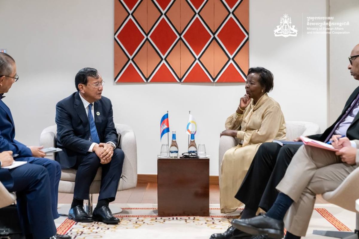 នៅរសៀលថ្ងៃទី១៨ ខែវិច្ឆិកា ឆ្នាំ២០២៥ ឯកឧត្តមឧបនាយករដ្ឋមន្ត្រី ប្រាក់ សុខុន រដ្ឋមន្ត្រីការបរទេស និងសហប្រតិបត្តិការអន្តរជាតិ បានអញ្ជើញជួបពិភាក្សាការងារទ្វេភាគីជាមួយ លោកជំទាវ Louise MUSHIKIWABO អគ្គលេខាធិការអង្គការអន្តរជាតិហ្រ្វង់កូហ្វូនី (OIF) នៅទីក្រុងគីហ្គាលី ប្រទេសររ៉ាន់ដា។