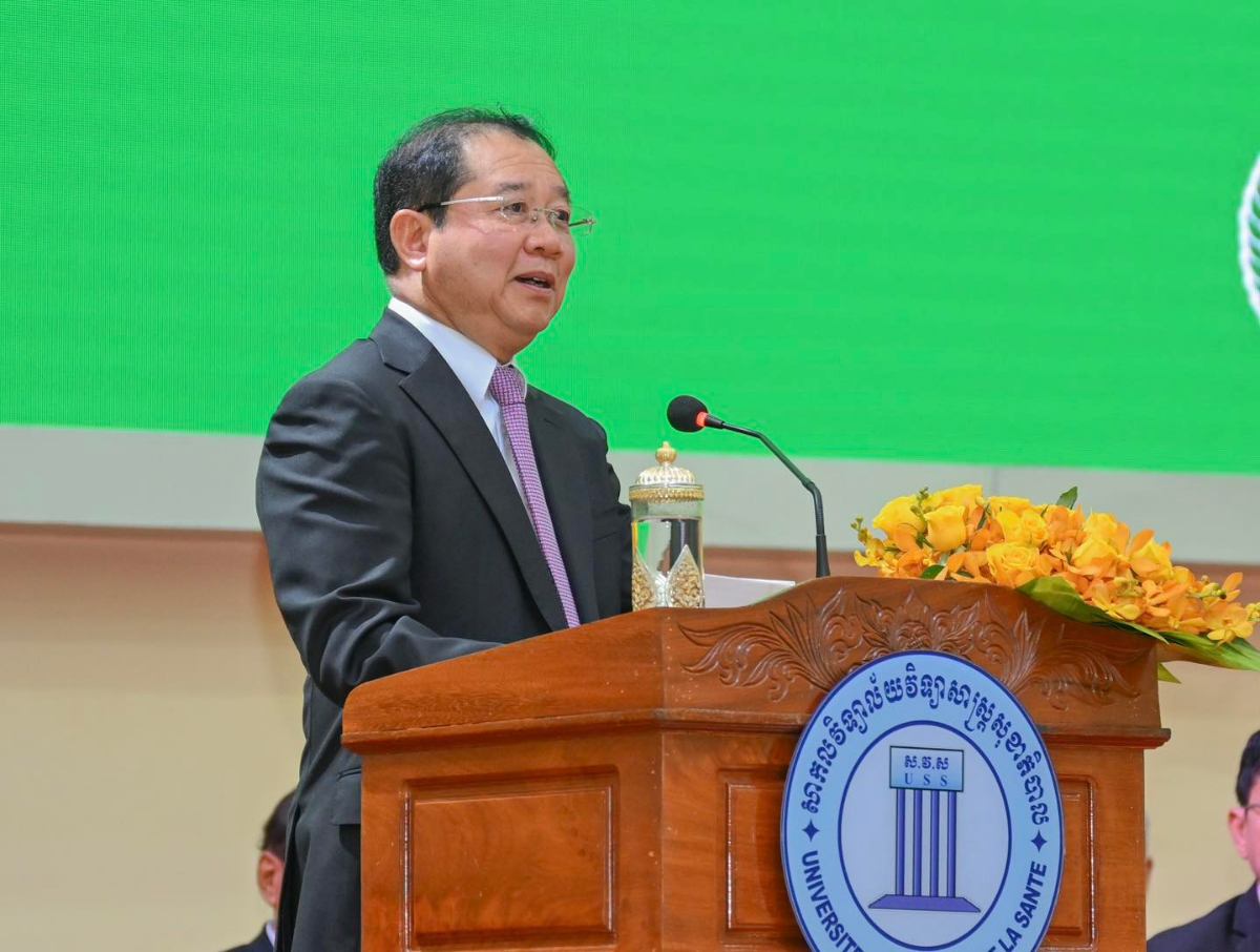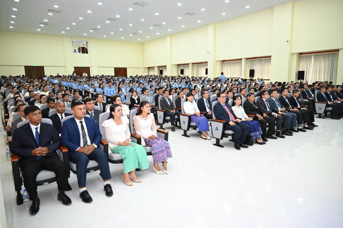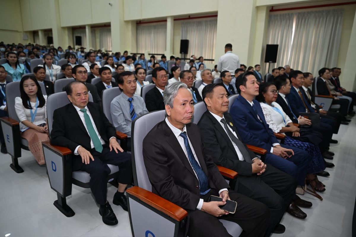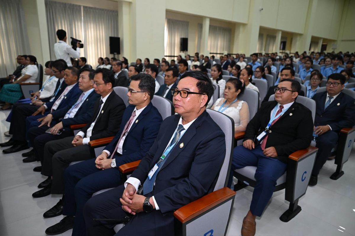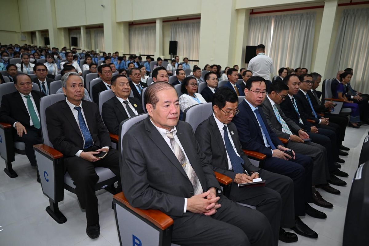 ឯកឧត្តមសាស្រ្តាចារ្យរដ្ឋមន្រ្តី បានលើកឡើងថា ក្រោមការដឹកនាំប្រកបដោយគតិបណ្ឌិត ចក្ខុវិស័យវែងឆ្ងាយ ស្មារតីបុរេសកម្ម និងភាពស្វាហាប់ របស់ សម្តេចមហាបវរធិបតី ហ៊ុន ម៉ាណែត នាយករដ្ឋមន្ត្រីនៃព្រះរាជាណាចក្រកម្ពុជា បានយកចិត្តទុកដាក់ខ្ពស់លើការកសាងមូលធនមនុស្សជាអាទិភាពចម្បងបំផុត។ ឯកឧត្តមសាស្រ្តាចារ្យវាយតម្លៃខ្ពស់ ចំពោះសមិទ្ធផលបណ្តុះបណ្តាលដែលសម្រេចបាន និងភាពរីកចម្រើនឈានឡើងជាបន្តបន្ទាប់របស់សាកលវិទ្យាល័យវិទ្យាសាស្រ្តសុខាភិបាល។ ឯកឧត្តមសាស្រ្តាចារ្យ បានរំលេចពីការអនុវត្តការកែទម្រង់ និងការកែលម្អប្រព័ន្ធសុខាភិបាលជាបន្តបន្ទាប់ ដើម្បីធានាថា ពលរដ្ឋកម្ពុជាទាំងអស់ ទទួលបានសុខភាពល្អ និងជីវភាពប្រសើរ។ ឯកឧត្តមសាស្រ្តាចារ្យ បានអំពាវនាវដល់ ថ្នាក់ដឹកនាំមន្ទីរពេទ្យ និង ទីតាំងកម្មសិក្សាផ្សេងៗទៀតទាំងអស់ សូមបន្តគាំទ្រសហការយ៉ាងជិតស្និទ្ធជាមួយសាកលវិទ្យាល័យវិទ្យាសាស្រ្តសុខាភិបាល។