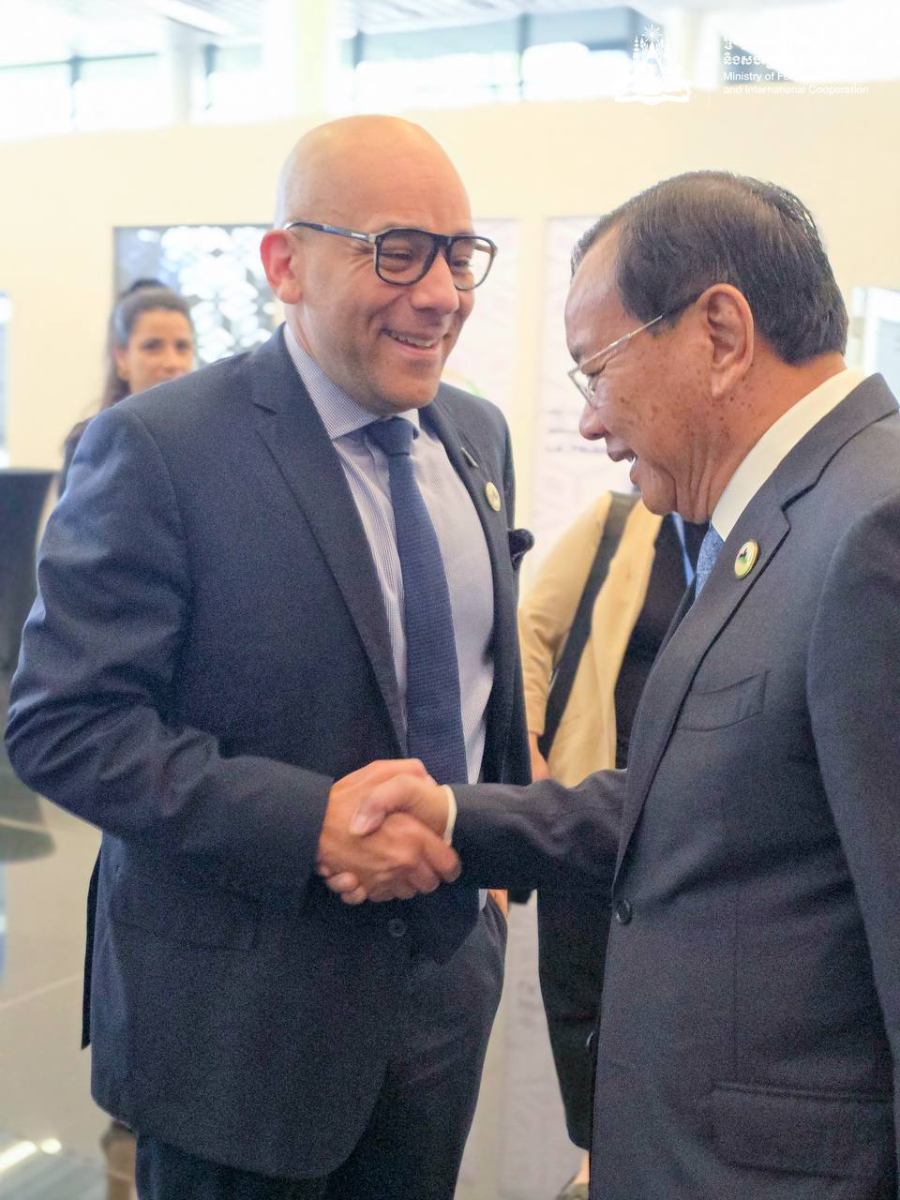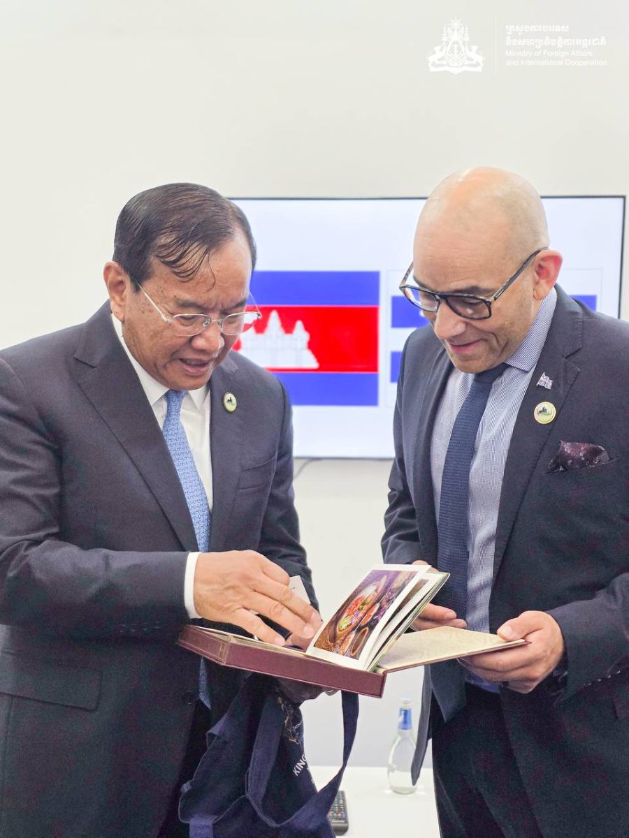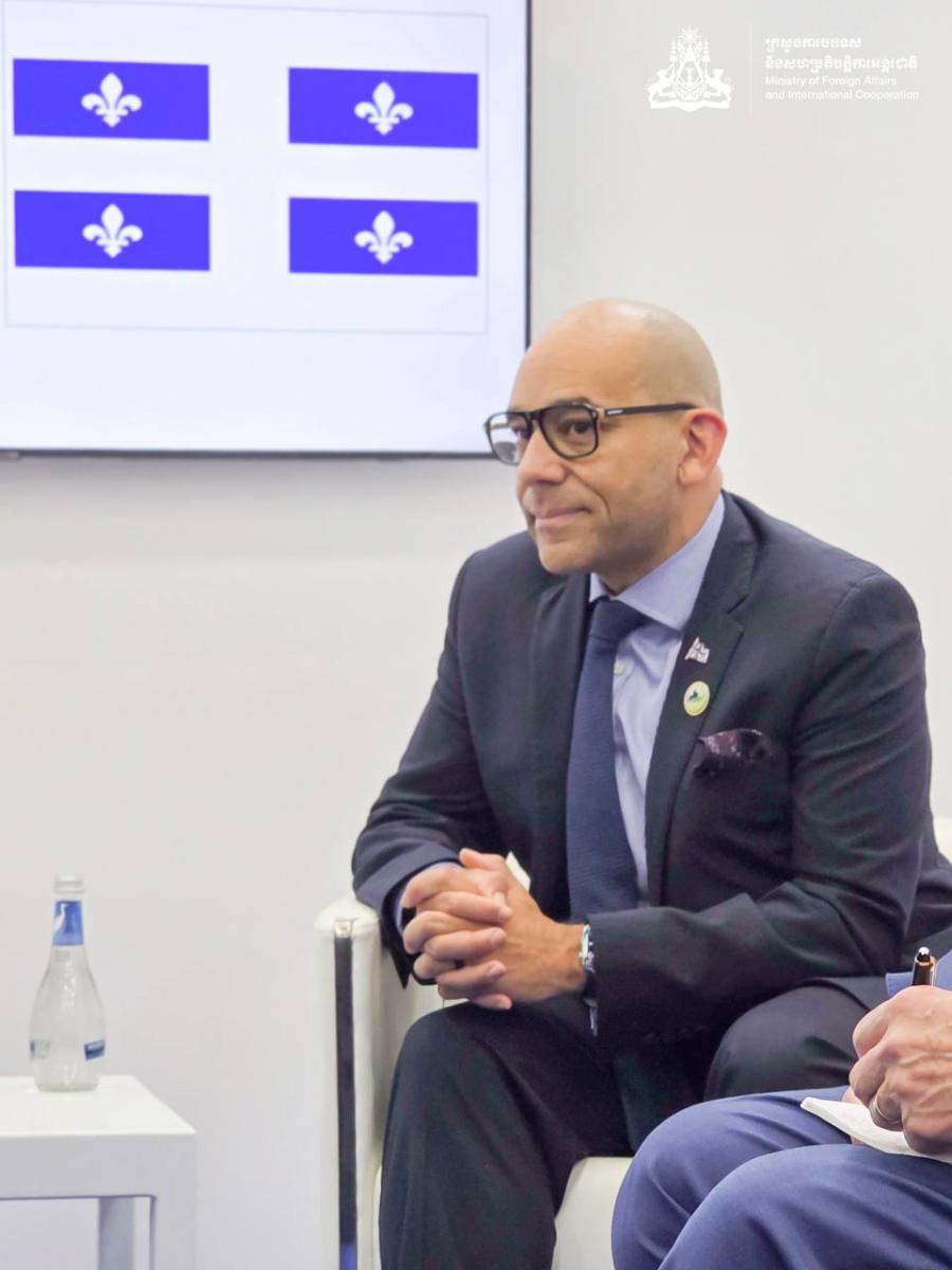នៅព្រឹកថ្ងៃទី២០ ខែវិច្ឆិកា ឆ្នាំ២០២៥ ឯកឧត្តមឧបនាយករដ្ឋមន្ត្រី ប្រាក់ សុខុន រដ្ឋមន្ត្រីការបរទេស និងសហប្រតិបត្តិការអន្តរជាតិ បានអញ្ជើញជួបពិភាក្សាទ្វេភាគីជាមួយ ឯកឧត្តម Christopher Skeete រដ្ឋមន្ត្រីទទួលបន្ទុកទំនាក់ទំនងអន្តរជាតិ និងហ្រ្វង់កូហ្វូនីនៃរដ្ឋកេបិច។