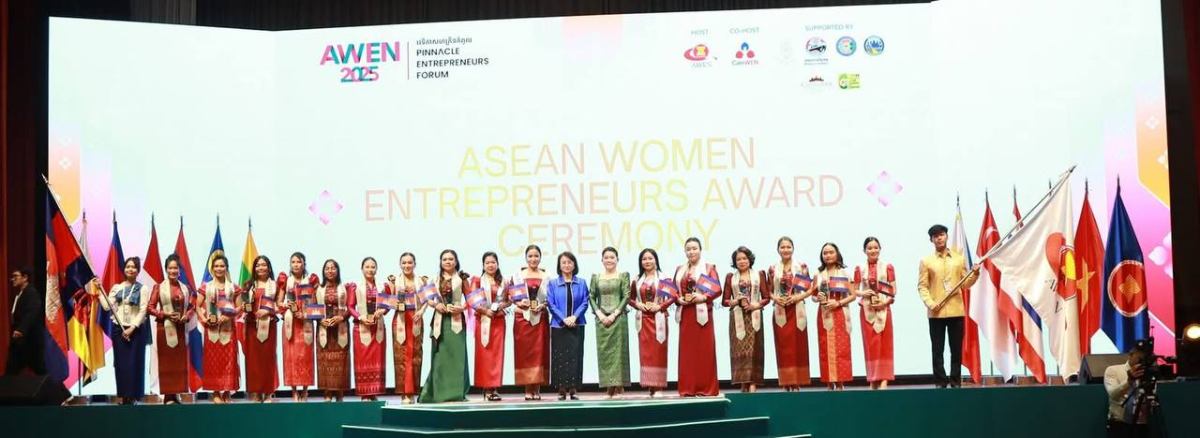 សហគ្រិនស្រ្តីកម្ពុជា លើកឡើងក្នុងការទទួលបានពានរង្វាន់បណ្តាញសហគ្រិនស្រ្តីអាស៊ាន (AWEN) នៅចុងសប្តាហ៍កន្លង មកថា ពានរង្វាន់បណ្តាញសហគ្រិនស្ត្រីអាស៊ាន គឺជាការទទួលស្គាល់ដ៏មានកិត្យានុភាព ដែលជាសមិទ្ធិផលឆ្នើម និងការរួមចំណែក របស់សហគ្រិនស្ត្រីនៅទូទាំងអាស៊ាន។ ពានរង្វាន់នេះបង្ហាញពីភាពធន់ ការច្នៃប្រឌិត និងភាពជាអ្នកដឹកនាំរបស់ស្ត្រី ជាពិសេសនៅក្នុងឧស្សាហកម្ម និងសហគមន៍របស់ពួកគេ។ តាមរយៈការផ្តល់ពានរង្វាន់ ក៏មានគោលបំណងបំផុសគំនិតអ្នកដឹកនាំស្ត្រីជំនាន់ក្រោយ និង ជំរុញប្រព័ន្ធអេកូឡូស៊ីគាំទ្រសម្រាប់ស្ត្រីក្នុងអាជីវកម្ម។