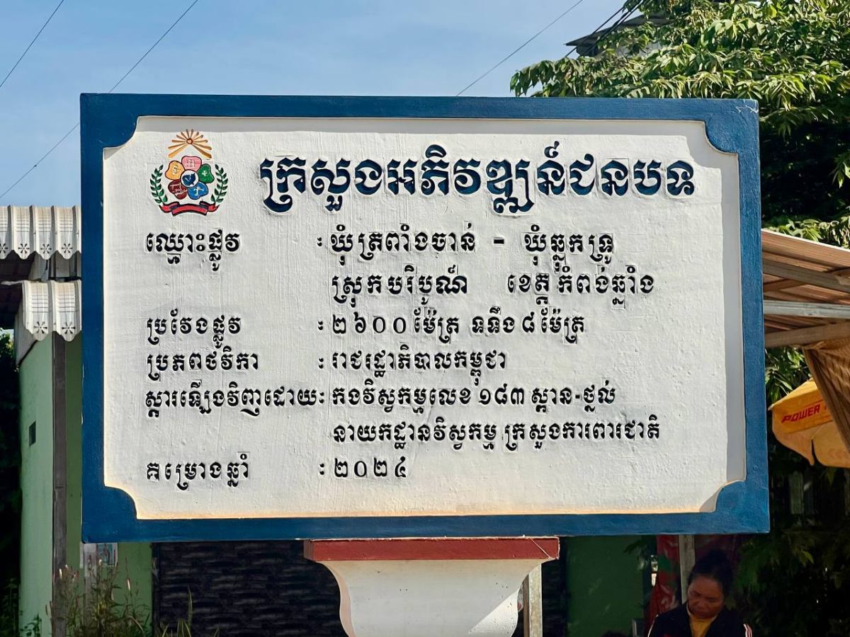 ឯកឧត្តម ផូ ផារិទ្ធ រដ្ឋលេខាធិការ តំណាងដ៏ខ្ពង់ខ្ពស់ឯកឧត្តម ឆាយ ឫទ្ធិសែន រដ្ឋមន្ត្រីក្រសួងអភិវឌ្ឍន៍ជនបទ នៅថ្ងៃទី២៤ ខែវិច្ឆិកា ឆ្នាំ២០២៥នេះ បានដឹកនាំគណៈកម្មការអន្តរក្រសួងរួមមាន, ក្រសួងអភិវឌ្ឍន៍ជនបទ និងក្រសួងសេដ្ឋកិច្ច និងហិរញ្ញវត្ថុ ចុះ ត្រួតពិនិត្យ វាយតម្លៃ បញ្ចប់សុពលភាព លើការងារស្ដារឡើងវិញផ្លូវ លូ នឹងផ្លាកឈ្មោះផ្លូវ ស្ថិតក្នុងខេត្តចំនួនពីររួមមាន៖ គម្រោងទី១៖ ការងារស្តារឡើងវិញផ្លូវក្រាលដីល្បាយក្រួសចំនួន ១ខ្សែ ប្រវែងជា ១១ គីឡូម៉ែត្រ ទទឹង ៥ ម៉ែត្រ និងសំណង់សិល្បការ្យផ្សេងៗ ស្ថិត នៅភូមិកំពង់ឈើទាល ឃុំសំបូរណ៍ ទៅភូមិតាអោក ឃុំឈូក ស្រុកប្រាសាទសំបូរ ខេត្តកំពង់ធំ។ គម្រោងទី២៖ ការងារស្ដារឡើងវិញ ផ្លូវក្រាលដីល្បាយក្រួសចំនួន ១ខ្សែ មាន៦កំណាត់ ប្រវែងសរុប ៩ គីឡូម៉ែត្រ ទទឹង ៨ ម៉ែត្រ និងសំណង់សិល្បការ្យផ្សេងៗ ស្ថិតនៅ ភូមិត្រពាំងចាន់ ឃុំត្រពាំងចាន់ ទៅភូមិឆ្នុកទ្រូ ឃុំឆ្នុកទ្រូ ស្រុកបរិបូរណ៍ ខេត្តកំពង់ឆ្នាំង។