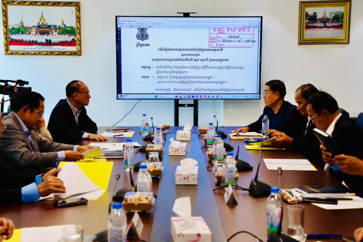 ឯកឧត្តម អង្គ វង្ស វឌ្ឍានា ប្រធានគណៈកម្មការនីតិកម្ម និងយុត្តិធម៌ (គណៈកម្មការទី៦) នៃរដ្ឋសភា នាព្រឹកថ្ងៃទី២៥ ខែវិច្ឆិកា ឆ្នាំ២០២៥ បានអញ្ជើញដឹកនាំ សមាជិក សមាជិកា គណៈកម្មការ ប្រជុំផ្ទៃក្នុង នៅវិមានរដ្ឋសភា ដើម្បីពិនិត្យសិក្សាលើសេចក្តីស្នើច្បាប់ ស្តីពីវិសោធនកម្មច្បាប់ ស្តីពីការបោះឆ្នោតជ្រើសតាំងសមាជិកព្រឹទ្ធសភា។