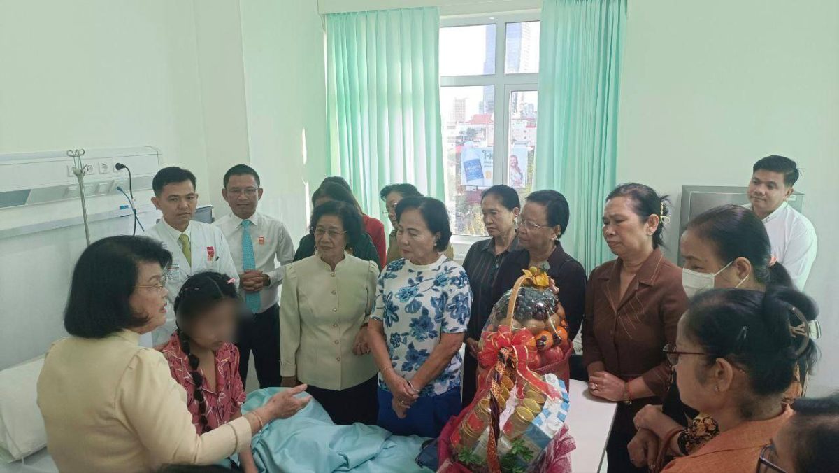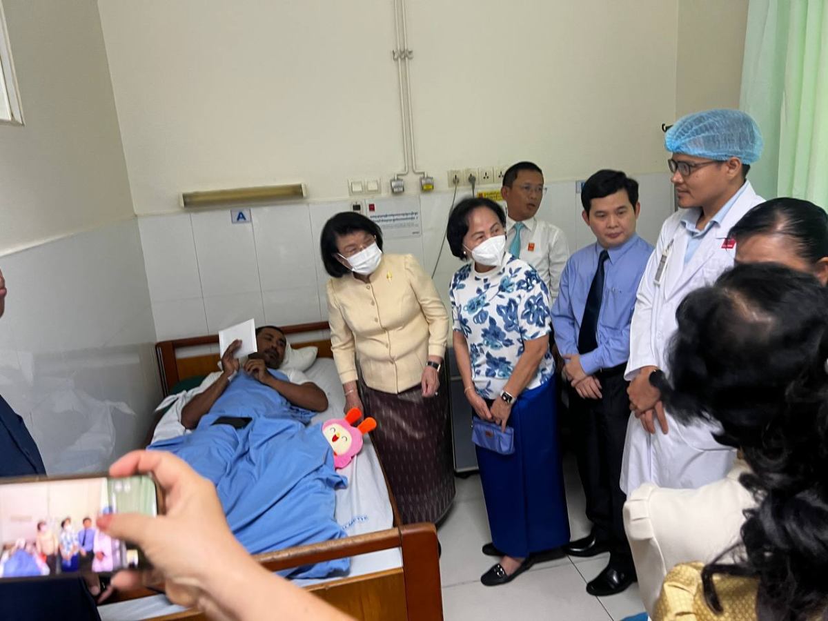 សម្តេចរដ្ឋសភាធិបតី ឃួន សុដារី ចុះសួរសុខទុក្ខចែកអំណោយដល់ពលការិនី និងពលរដ្ឋរងគ្រោះពីការរំលោភបំពានផ្លូវភេទ និងបាញ់ប្រហារដោយយោធាថៃ នៅមន្ទីរពេទ្យកាល់ម៉ែត