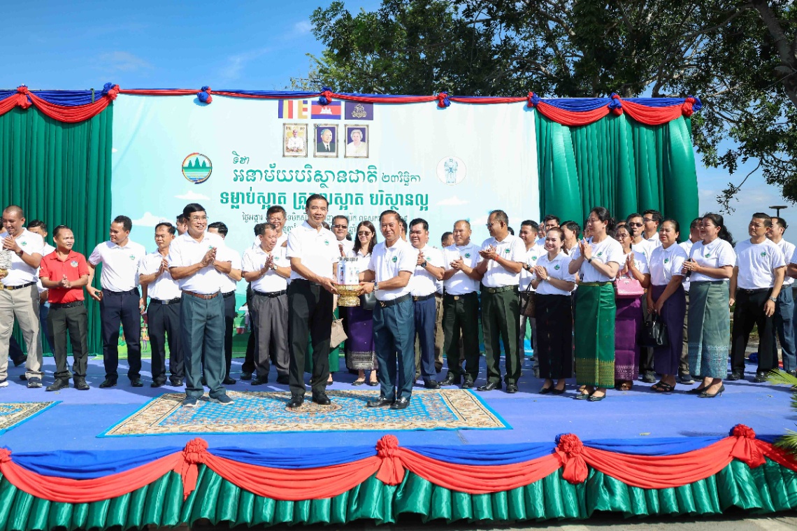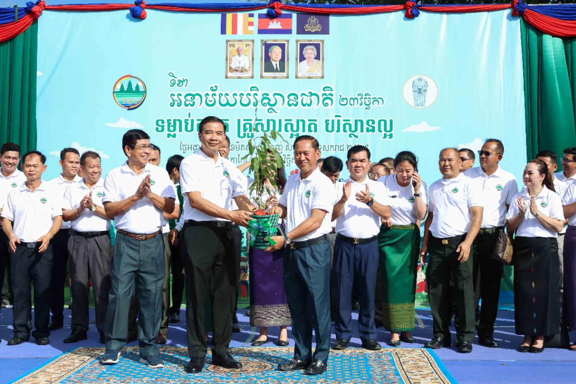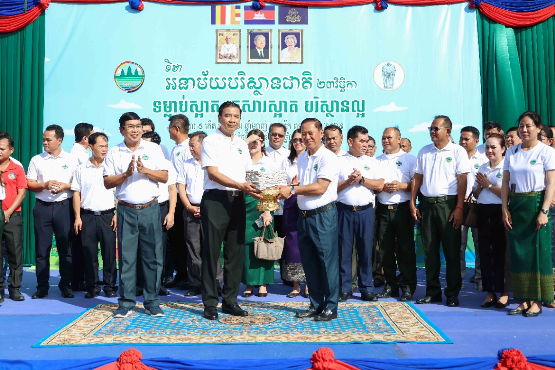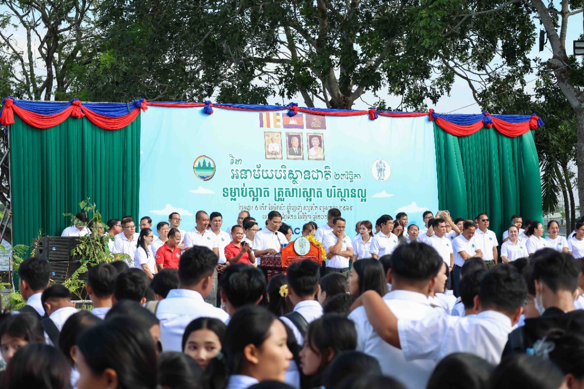មហាជនមកពីគ្រប់មជ្ឈដ្ឋានប្រមាណជាង១៥០០នាក់ ចូលរួមប្រារព្ធទិវាបរិស្ថានជាតិ ២៣វិច្ឆិកា ឆ្នាំ២០២៥ ក្រោមប្រធានបទ «ទម្លាប់ស្អាត គ្រួសារស្អាត បរិស្ថានល្អ» នៅខេត្តតាកែវ នាព្រឹកថ្ងៃទី២៥ ខែវិច្ឆិកា ឆ្នាំ២០២៥។ ពិធីនេះ ប្រព្រឹត្តទៅក្រោមអធិបតីភាពឯកឧត្តម អ៊ាត សីលា រដ្ឋលេខាធិការ តំណាងដ៏ខ្ពង់ខ្ពស់ឯកឧត្តមបណ្ឌិត អ៊ាង សុផល្លែត រដ្ឋមន្ត្រីក្រសួងបរិស្ថាន ឯកឧត្តម យស ណាស៊ី ប្រធានក្រុមប្រឹក្សាខេត្តតាកែវ និងឯកឧត្តម វ៉ី សំណាង អភិបាលនៃគណៈអភិបាលខេត្ត និងមានការចូលរួមពីឯកឧត្តម លោកជំទាវ ថ្នាក់ដឹកនាំក្រសួងបរិស្ថាន តំណាងក្រុមហ៊ុនវឌ្ឍនៈ ប្រ៊ូវើរី លោក លោកស្រី ប្រធានមន្ទីរជុំវិញខេត្ត ថ្នាក់ដឹកនាំ មន្រ្តីរាជការ រដ្ឋបាលថ្នាក់ក្រោមជាតិ ដៃគូអភិវឌ្ឍន៍ លោកគ្រូ-អ្នកគ្រូ យុវជនកាយឫទ្ធិ យុវជនកាកបាទក្រហមកម្ពុជា ព្រមទាំងសិស្សានុសិស្ស។