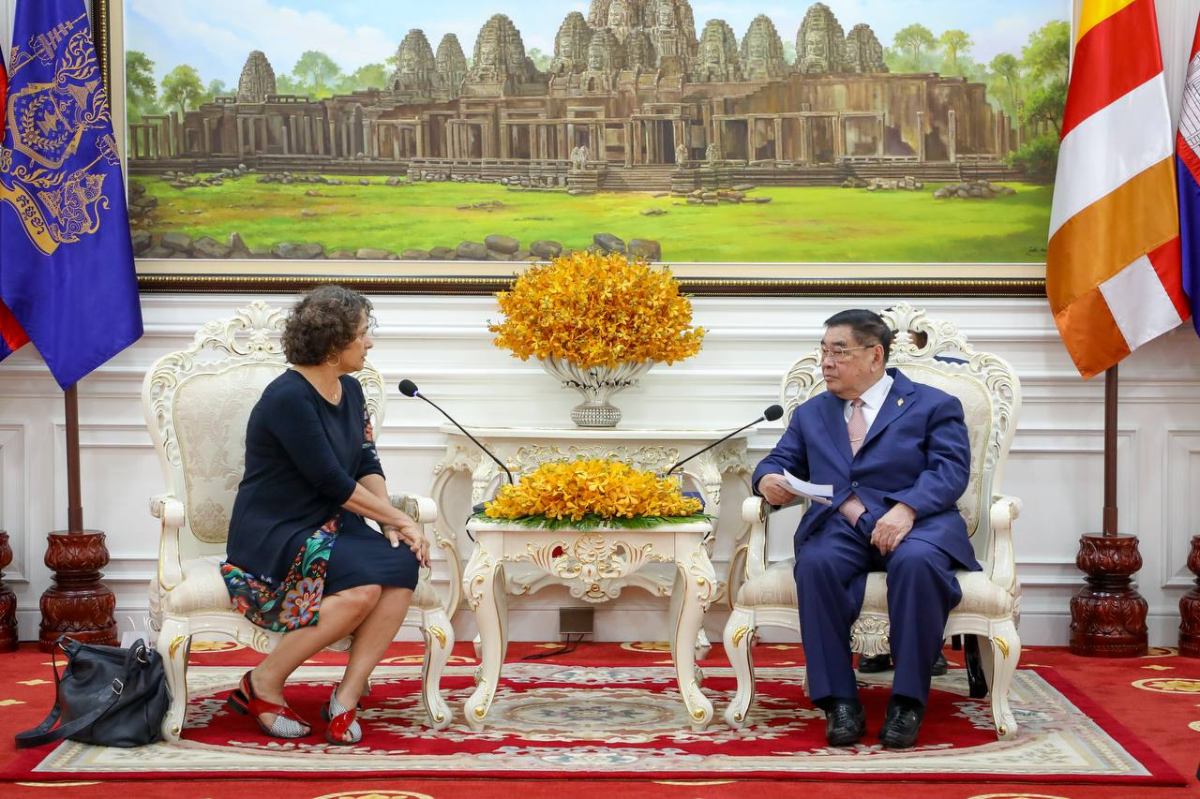 ឯកឧត្តមកិត្តិសេដ្ឋាបណ្ឌិត ជាម យៀប អនុប្រធានទី១ រដ្ឋសភា តំណាងដ៏ខ្ពង់ខ្ពស់របស់សម្តេចមហារដ្ឋសភាធិការធិបតី ឃួន សុដារី ប្រធានរដ្ឋសភានៃព្រះរាជាណាចក្រកម្ពុជា នាព្រឹកថ្ងៃទី២៥ ខែវិច្ឆិកា ឆ្នាំ២០២៥ បានអនុញ្ញាតឱ្យលោកជំទាវ អាឡូណា ហ្វីសស៊ឺ-ខេម (Alona Fisher-Kamm) ឯកអគ្គរដ្ឋទូត នៃរដ្ឋអ៊ីស្រាអែលចូលជួបសំដែងការគួរសមនិងពិភាក្សាការងារ នៅវិមានរដ្ឋសភា។