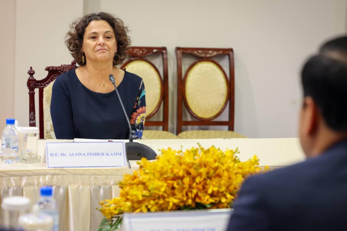 ជាការឆ្លើយតប លោកជំទាវ Alona Fisher-Kamm បានជម្រាបជូន ឯកឧត្តម ប្រធានក្រុមមិត្តភាពរដ្ឋសភាកម្ពុជា-អ៊ីស្រាអែល ថា លោកជំទាវមានក្តីរំភើបរីករាយ និងកិត្តិយស់ជាខ្លាំងដែលបាននាំយកសារតាំងថ្វាយព្រះករុណាព្រះមហាក្សត្រ នៃព្រះរាជាណាចក្រកម្ពុជា នៅព្រះបរមរាជវាំង។ ជាមួយគ្នានេះ លោកជំទាវឯកអគ្គរដ្ឋទូត ក៏បានវាយតម្លៃខ្ពស់ចំពោះទំនាក់ទំនងរវាងប្រទេសទាំងពីរកម្ពុជា-អ៊ីស្រាអែល រយៈពេល ៣០ឆ្នាំកន្លងមកនេះ ពិសេសប្រទេសទាំងពីរ បានបើកនូវស្ថានកុងស៊ុលកិត្តិយសប្រចាំប្រទេសទាំងពីរនាពេលថ្មីៗនេះ ព្រមទាំងការបង្កើតបាននូវសភាពាណិជ្ជកម្មអ៊ីស្រាអែលនៅកម្ពុជា ដោយបានផ្តោតសំខាន់លើវិស័យកសិកម្ម អប់រំ សហគ្រិនភាព នវានុវត្តន៍ រួមនឹងវិស័យផ្សេងៗទៀត។ ក្រៅពីនេះ នៅសប្តាហ៍ក្រោយនេះ អ៊ីស្រាអែល និងកម្ពុជា តាមរយៈក្រសួងការងារនិងបណ្តុះបណ្តាលវិជ្ជាជីវៈកម្ពុជា នឹងចុះហត្ថលេខាលើកិច្ចព្រមព្រៀងស្តីពីការងារ និងកសិកម្ម ដែលតាមរយៈកិច្ចព្រមព្រៀងនេះ អ៊ីស្រាអែលនឹងជួយបណ្តុះបណ្តាលដល់កម្មសិក្សាការីកម្ពុជា លើជំនាញកសិកម្ម និងជំនាញបច្ចេកទេសផ្សេងៗទៀត នៅក្នុងកសិដ្ឋាននៅប្រទេសអ៊ីស្រាអែលផ្ទាល់តែម្តង។