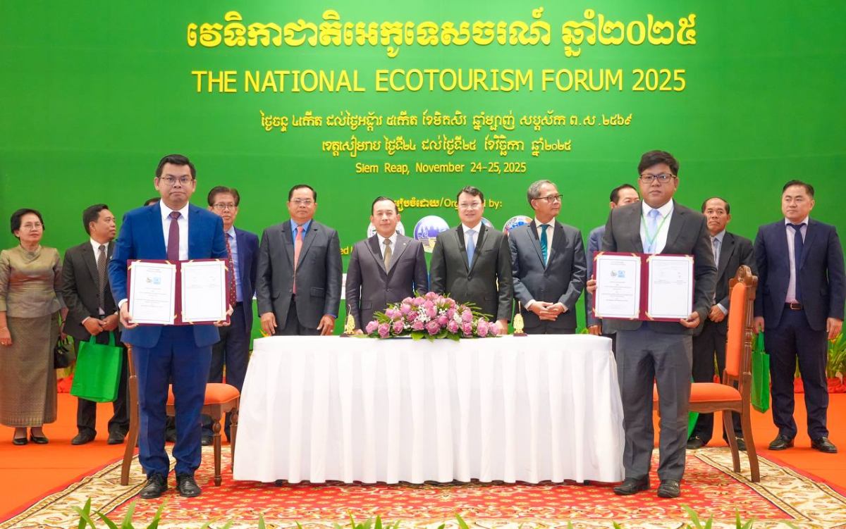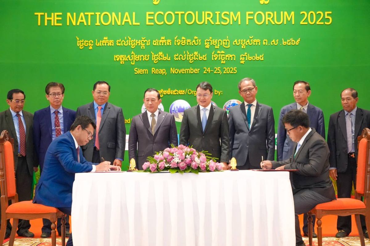 ឯកឧត្តមរដ្ឋមន្ត្រីក្រសួងទេសចរណ៍ រួមជាមួយឯកឧត្តមរដ្ឋមន្ត្រីក្រសួងកសិកម្ម រុក្ខាប្រមាញ់ និងនេសាទ អញ្ជើញជាអធិបតីក្នុងពិធីចុះហត្ថលេខាលើអនុស្សរណៈយោគយល់គ្នាចំនួន ៤ ក្នុងការបង្កើតបណ្តាញអេកូទេសចរណ៍ថ្មី ចំនួន ២