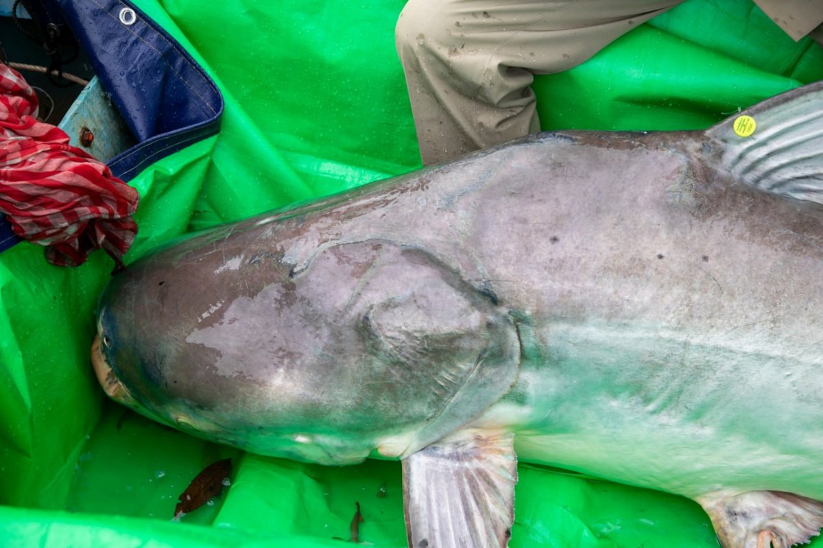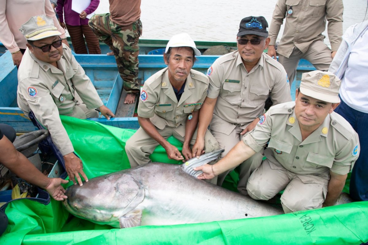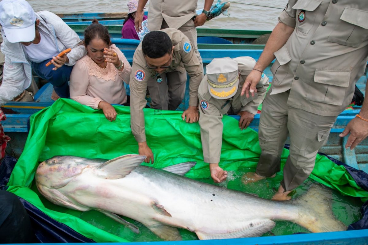 ត្រីរាជមួយក្បាលទម្ងន់ ៩៥គីឡូក្រាម ដែលអ្នកនេសាទចាប់បាន ក្នុងដែននេសាទ ជ្រោយមេត្រី សង្កាត់ចុងឃ្នាស ខេត្តសៀមរាប ត្រូវបានលែងចូលបឹងធម្មជាតិវិញ