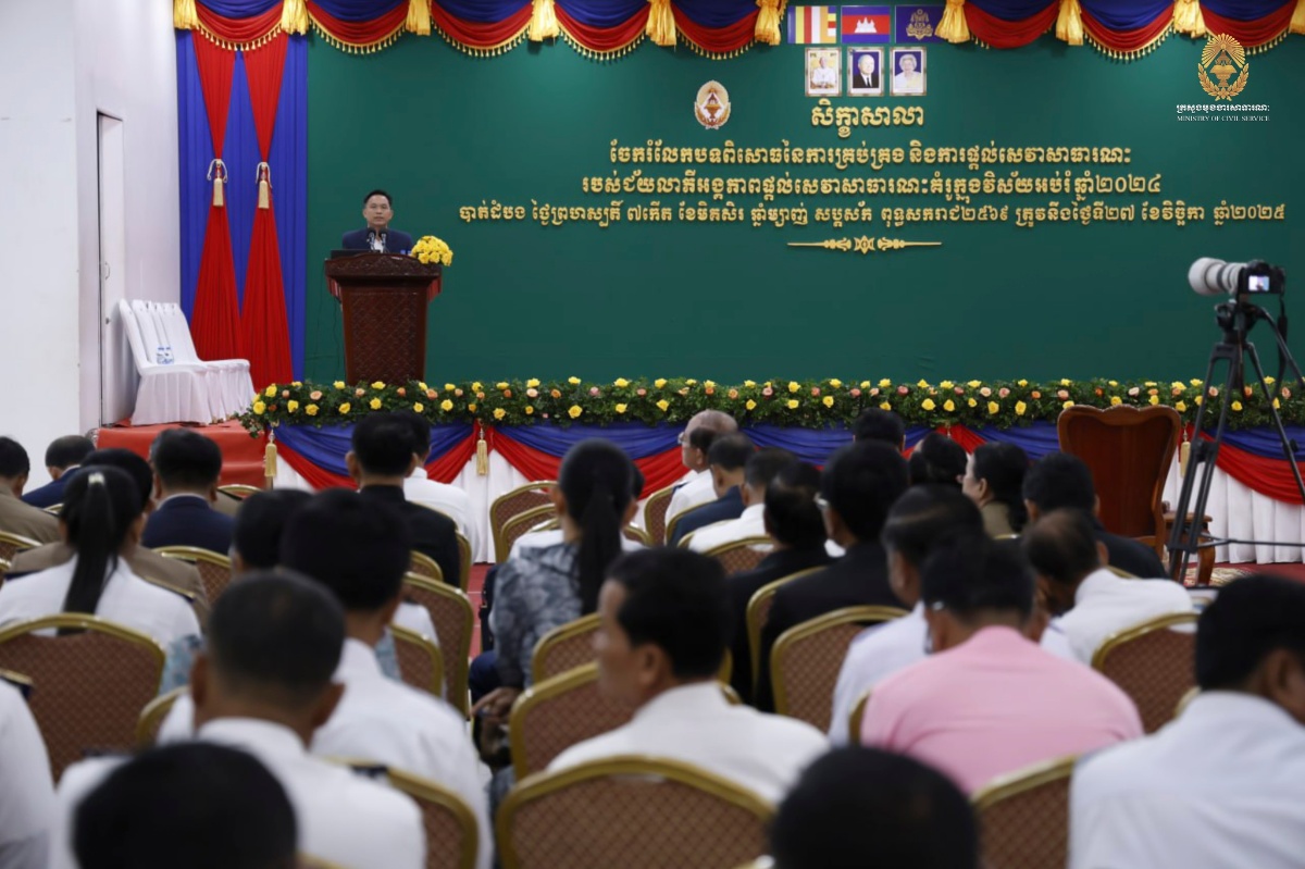 ក្រោយពីប្រកាសបើកសិក្ខាសាលាចែករំលែកបទពិសោធន៍នៃការគ្រប់គ្រង និងការផ្តល់សេវាសាធារណៈរបស់ជ័យលាភីអង្គភាពផ្តល់សេវាសាធារណៈគំរូក្នុងវិស័យអប់រំឆ្នាំ២០២៤ កម្រិតវិទ្យាល័យ ដោយ ឯកឧត្តម យក់ ប៊ុនណា រដ្ឋលេខាធិការប្រចាំការក្រសួងមុខងារសាធារណៈ តំណាងដ៏ខ្ពង់ខ្ពស់ ឯកឧត្តមឧបនាយករដ្ឋមន្ត្រី ហ៊ុន ម៉ានី រដ្ឋមន្ត្រីក្រសួងមុខងារសាធារណៈ និងជាប្រធានគណៈកម្មការវាយតម្លៃអង្គភាពផ្តល់សេវាសាធារណៈថ្នាក់ជាតិ (គ.វ.ជ.) រួចមក អង្គសិក្ខាសាលាបានផ្ដល់ជូនសិក្ខាកាមនូវវេទិកានៃការធ្វើបទបង្ហាញ ស្ដីពីការគ្រប់គ្រង និងការផ្តល់សេវាសាធារណៈ របស់លោកនាយកវិទ្យាល័យចំនួន៨ ដែលបានជាប់ជាអង្គភាពផ្ដល់សេវាសាធារណៈគំរូក្នុងវិស័យអប់រំ ឆ្នាំ២០២៤ សម្រាប់កម្រិតវិទ្យាល័យ។