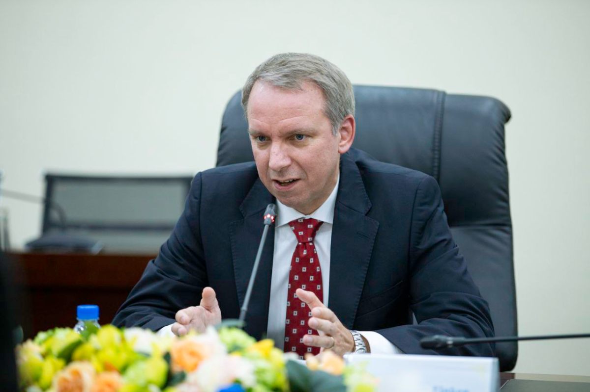 ជាការឆ្លើយតប លោក Thomas Finken បានថ្លែងអំណរគុណចំពោះ ឯកឧត្ដមរដ្ឋមន្រ្តី ដែលបានផ្តល់ព័ត៌មានយ៉ាងលម្អិតពាក់ព័ន្ធនឹងវិស័យសន្តិសុខសង្គមរបស់កម្ពុជា ព្រមទាំងបានកោតសរសើរ និងវាយតម្លៃខ្ពស់ចំពោះកិច្ចខិតខំប្រឹងប្រែងរបស់ក្រសួង។