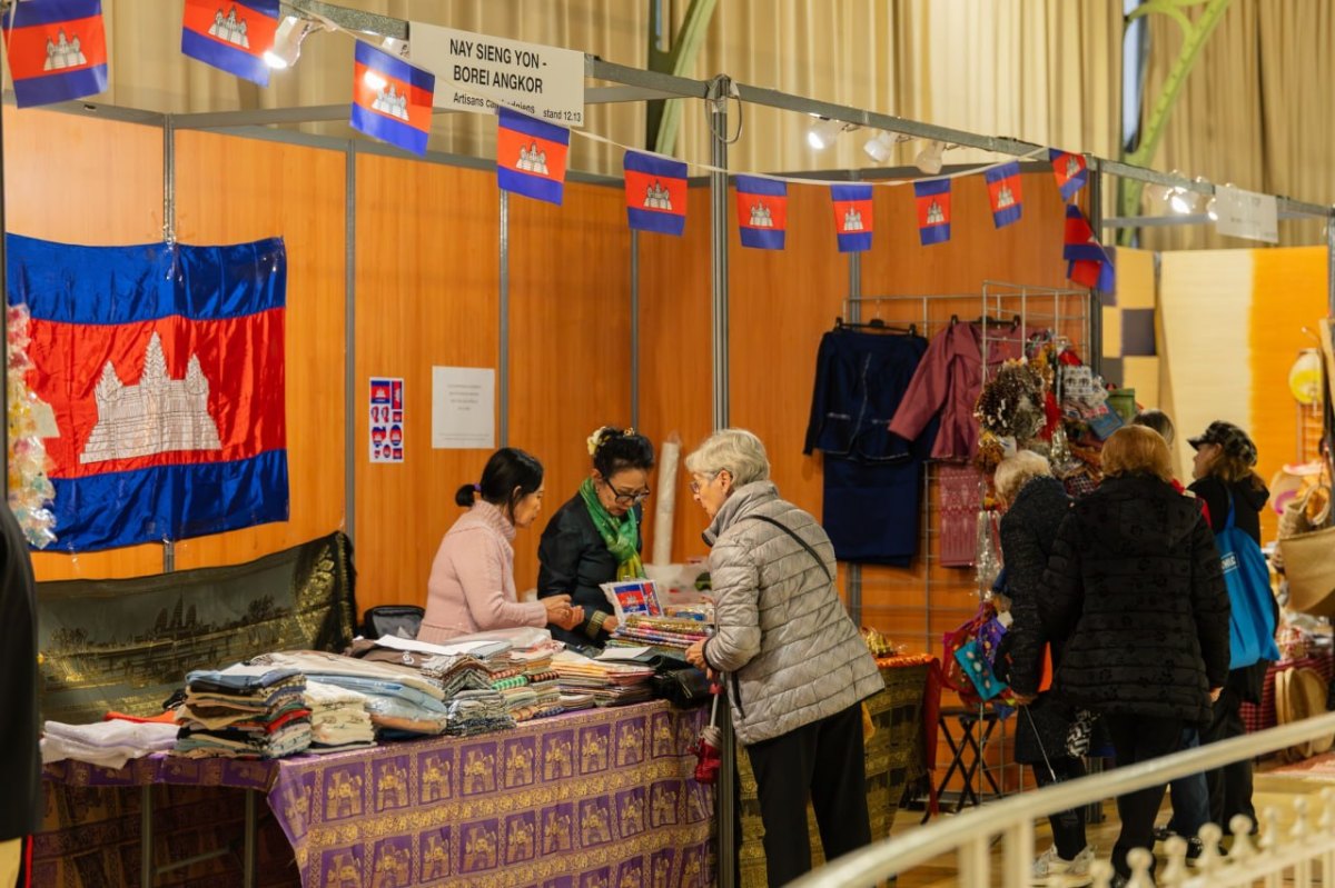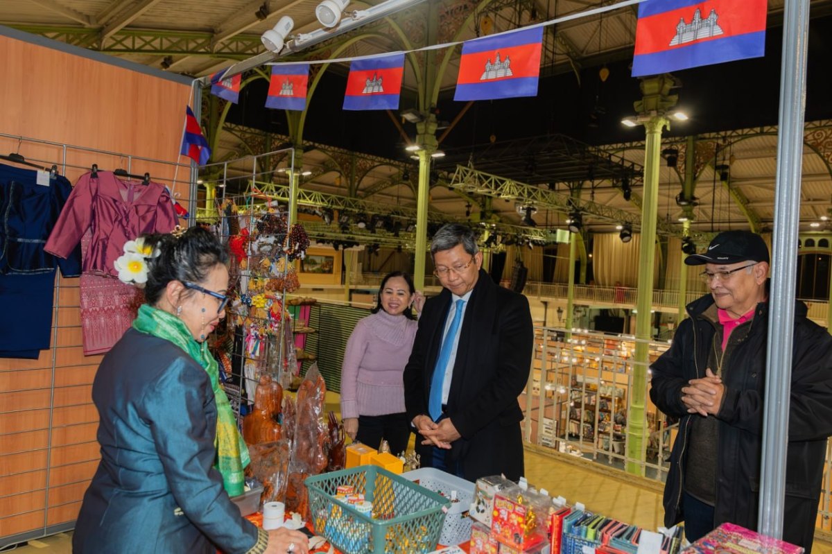 ឯកឧត្តមឯកអគ្គរាជទូតបានបញ្ជាក់ថា ប្រទេសកម្ពុជា មានស្តង់ចំនួន ១៥ ដើម្បីបង្ហាញពីភាពសម្បូរបែប និងភាពចម្រុះនៃសិប្បកម្មរបស់យើង រួមមាន គ្រឿងអលង្ការធ្វើពីប្រាក់ និងស្ពាន់, ក្រណាត់សូត្រ, គំនូរ, និង ផលិតផលតាមតំបន់ដូចជា ម្រេចកំពត និងគ្រាប់ស្វាយចន្ទី។