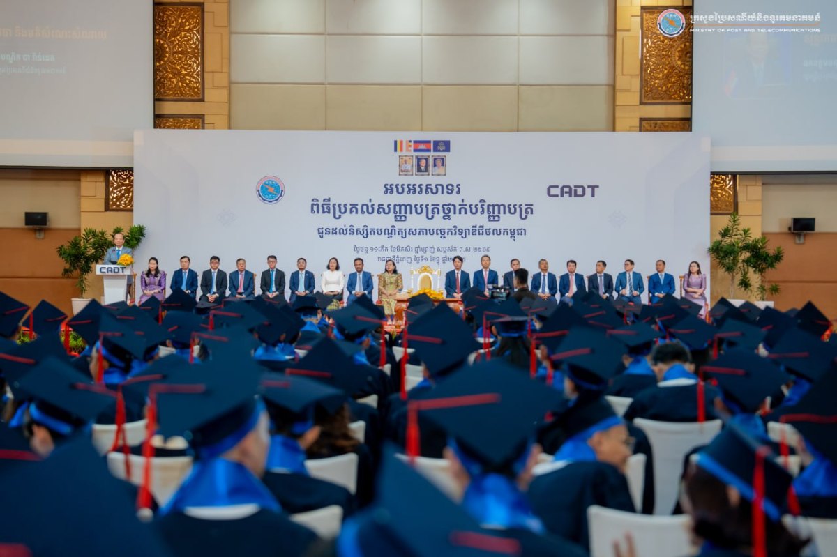 ព្រឹកថ្ងៃទី១ ខែធ្នូ ឆ្នាំ២០២៥ ឯកឧត្តម ជា វ៉ាន់ដេត រដ្ឋមន្រ្តីក្រសួងប្រៃសណីយ៍និងទូរគមនាគមន៍ (ក.ប.ទ.) បានអញ្ជើញជាអធិបតីក្នុងពិធីប្រគល់សញ្ញាបត្រថ្នាក់បរិញ្ញាបត្រ ជូននិស្សិតនៃបណ្ឌិត្យសភាបច្ចេកវិទ្យាឌីជីថលកម្ពុជា (ប.ប.ឌ.) ចំនួន ២៤២នាក់ ដោយមានការចូលរួមពី ថ្នាក់ដឹកនាំ ក.ប.ទ. ប្រធាន ប.ប.ឌ. ក្រុមប្រឹក្សាភិបាល ក្រុមប្រឹក្សាវិទ្យាសាស្រ្ត សាស្រ្តាចារ្យ និងបុគ្គលិកសិក្សា នៃ ប.ប.ឌ. តំណាងអង្គទូត ដៃគូរអភិវឌ្ឍន៍ គ្រឹះស្ថានអប់រំ និងអាណាព្យាបាលប្រមាណជាង ៩០០នាក់ នៅសណ្ឋាគារសុខាភ្នំពេញ។